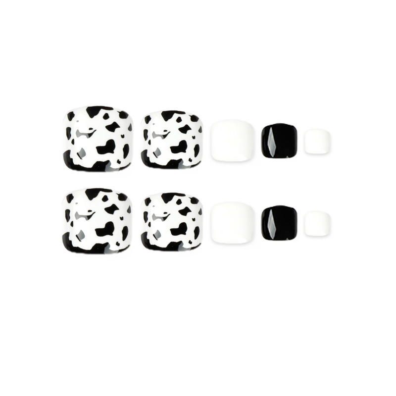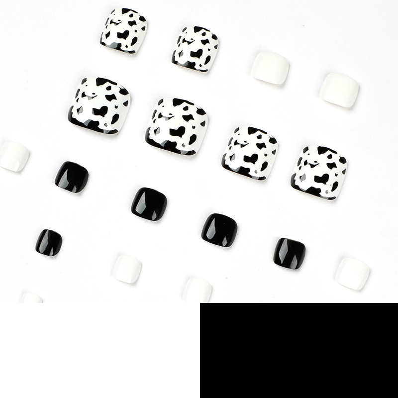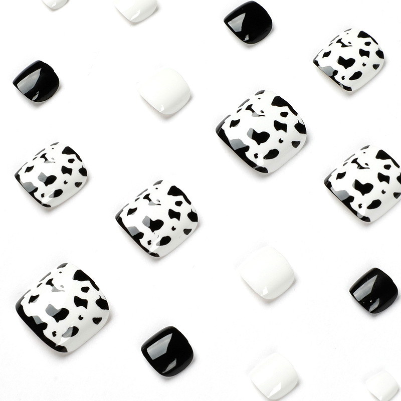 Fashion Summer Black And White Leopard Print Feet Nail Tip Fake Nails Wearable