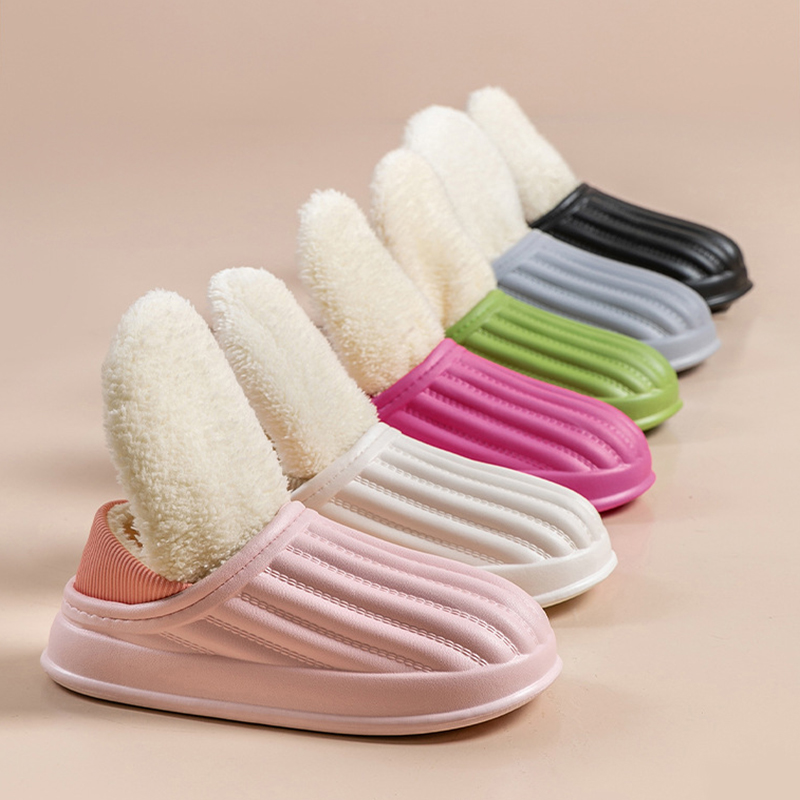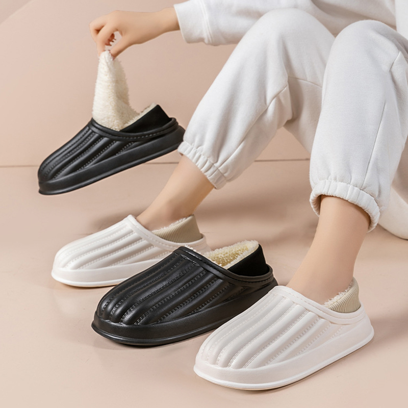 Fashion Thickened Couple Slippers Women's Winter Shoes Home Warm Plush Confinement Shoes