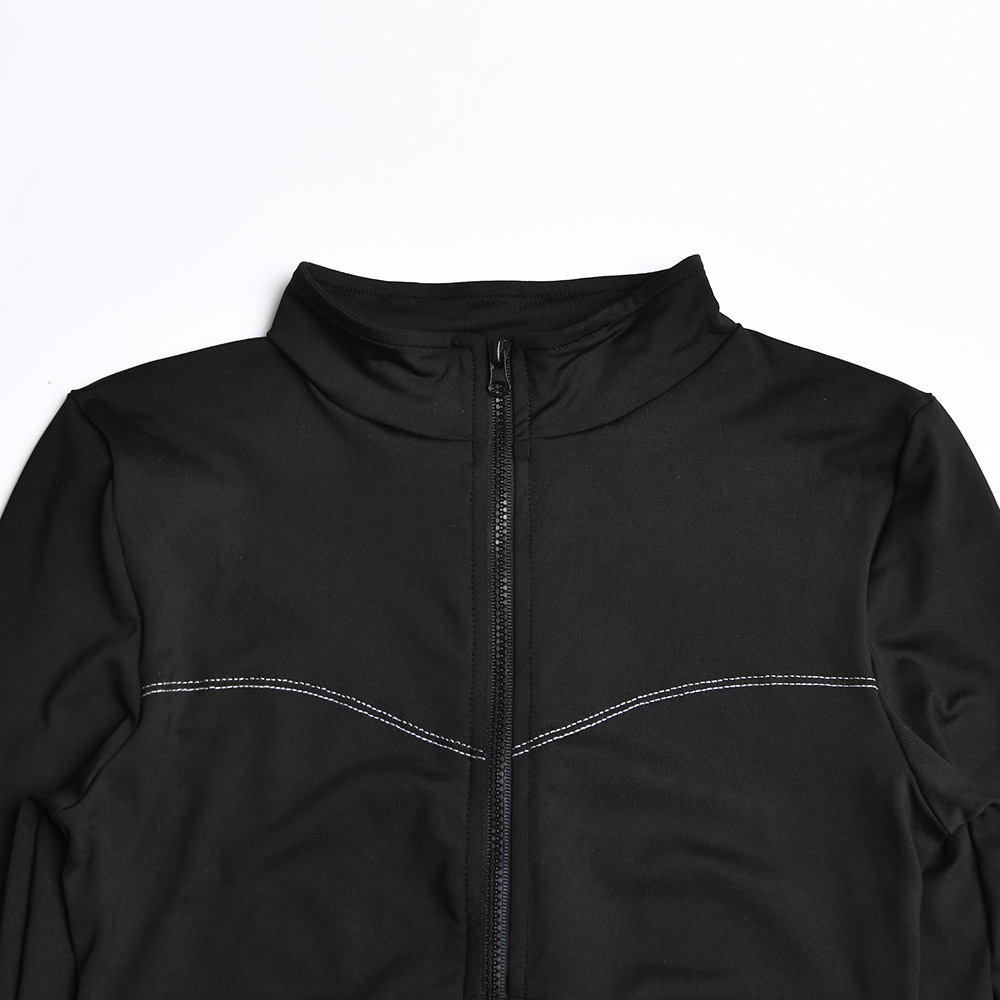 Features: zipper, round neck, stripe