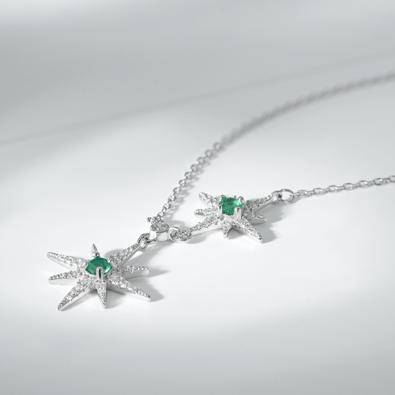 Specification: chain length 40+5cm, round emerald about 3/3.5mm, 0. 25/0. 3Ct
