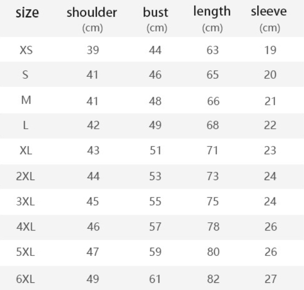 Size: XS,S,M,L,XL,2XL,3XL,4XL,5XL
