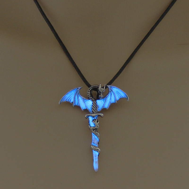 Fashion Trendy Men's Domineering Luminous Flame Dragon Necklace