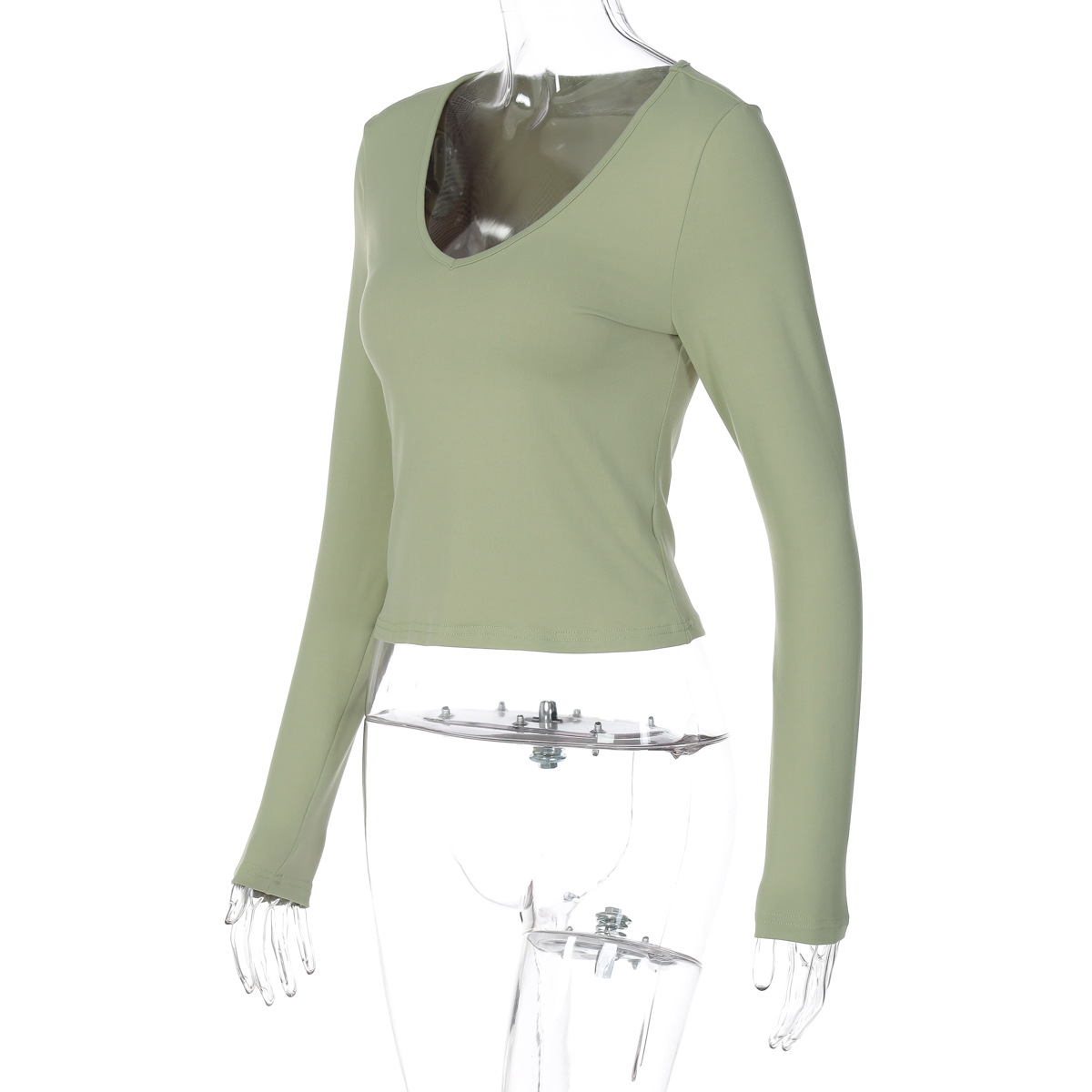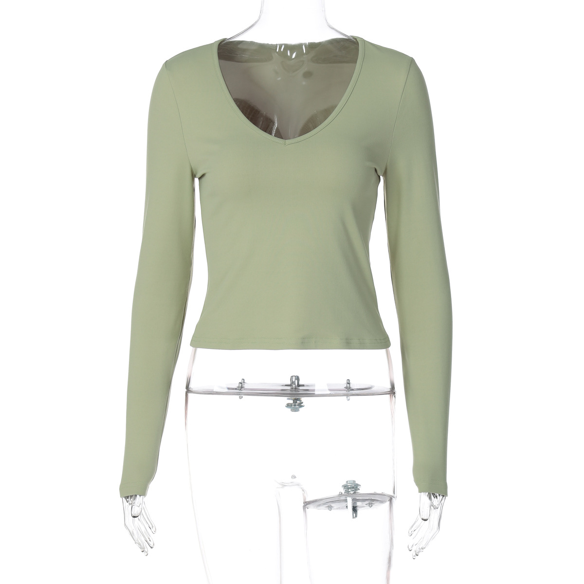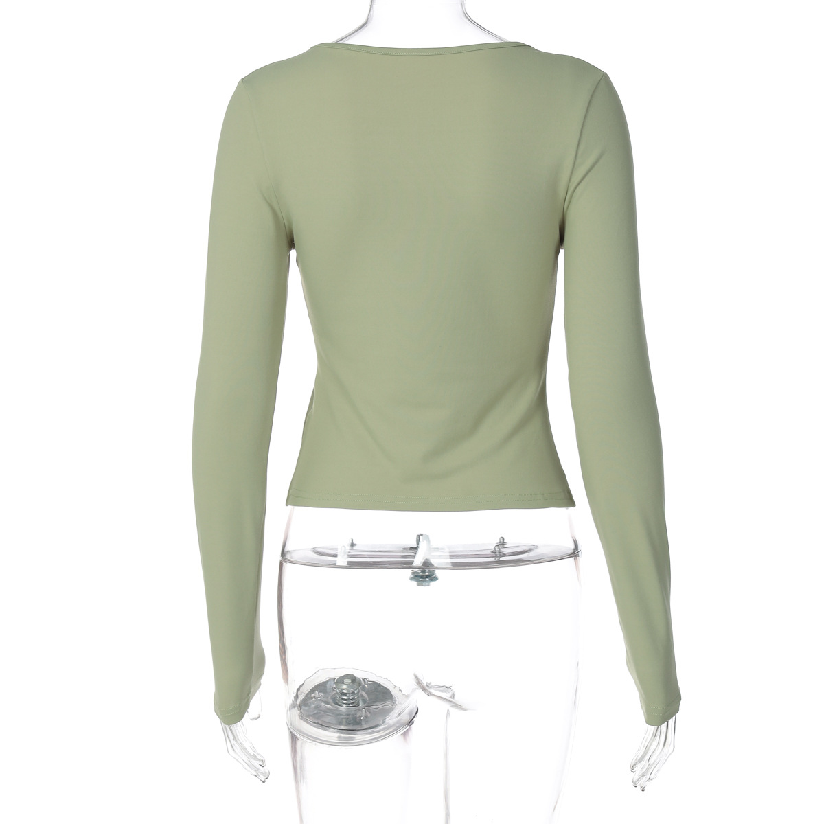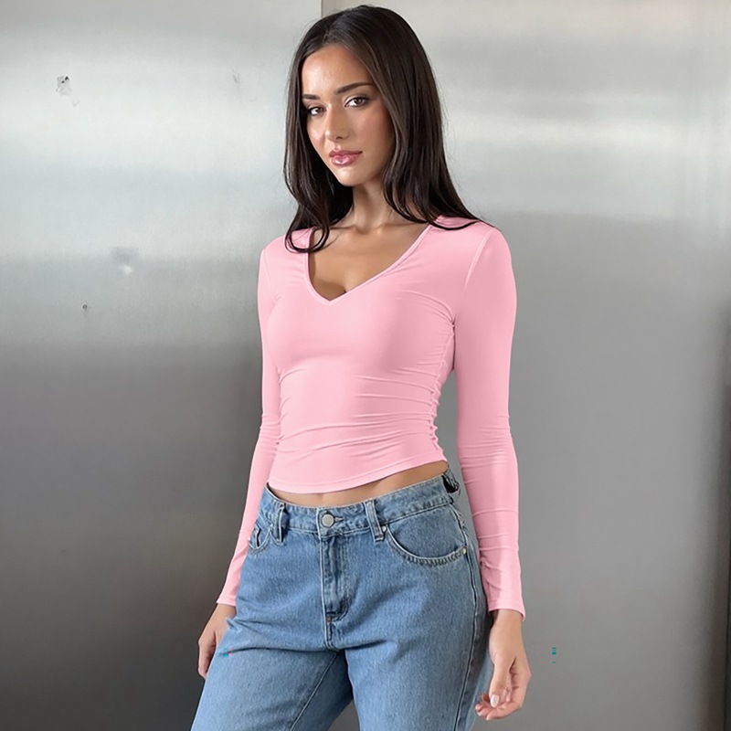 Fashion U-neck Slim Fit All-match Solid Color Long-sleeved T-shirt
