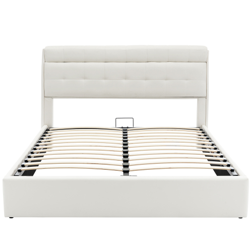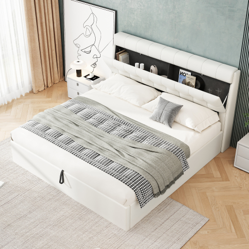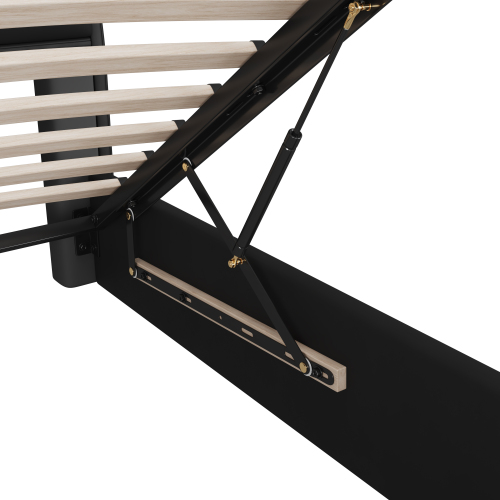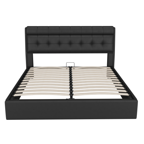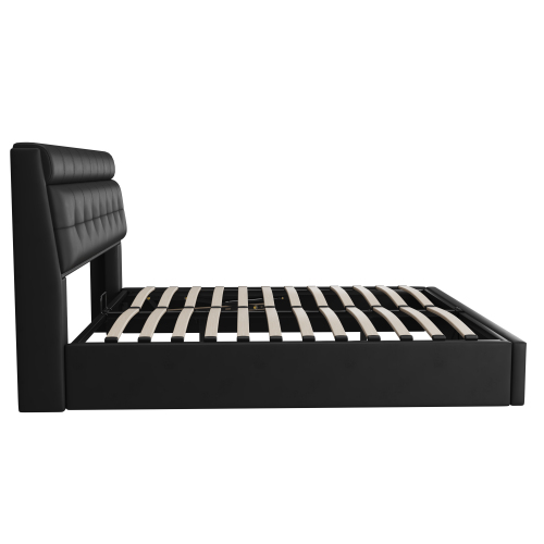 Product Name:Fashion Upholstered Bed,135*190(4ft6), Double Bed,Hydraulic Bed,Concealed Headboard Storage,Bed Box Storage,PU,With Slats and Headboard,Without Mattress,Black[OLD SKU:3201534AAS]