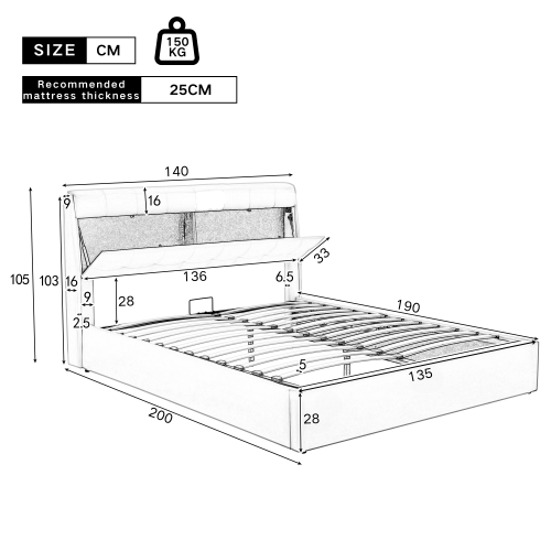 | Applicable mattress (mattress not included) | 135*190 cm |