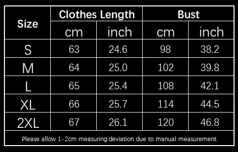 1. Asian sizes are 1 to 2 sizes smaller than European and American people. Choose the larger size if your size between two sizes. Please allow 2-3cm differences due to manual measurement.