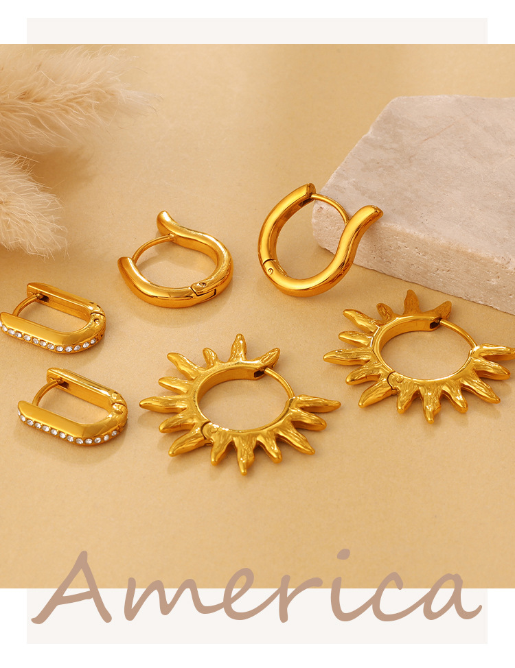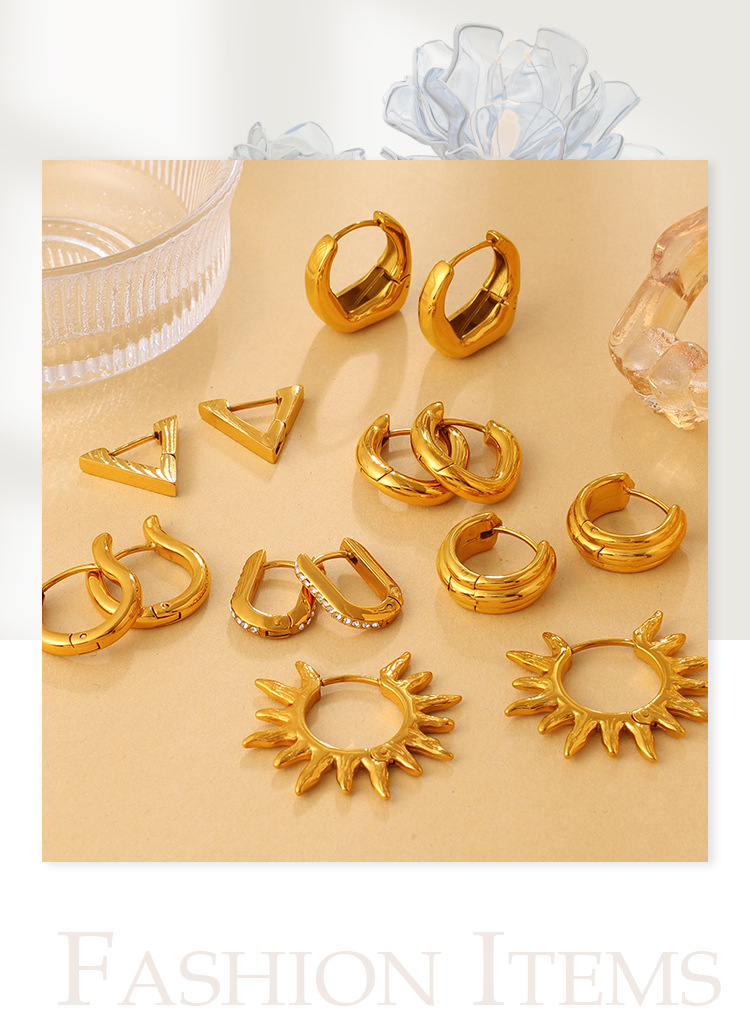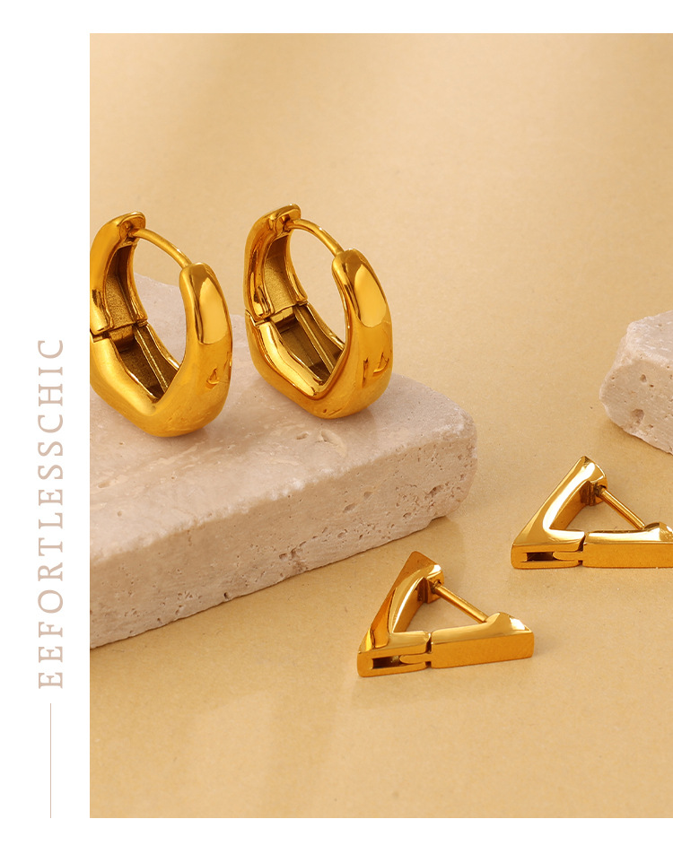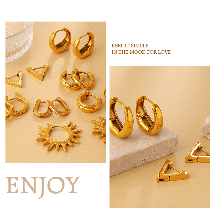 Fashion Vacation Style Geometric U-Shape & Triangle Earrings, Gold Color Fade-Resistant Sun Design, Daily Commute Earrings For Women