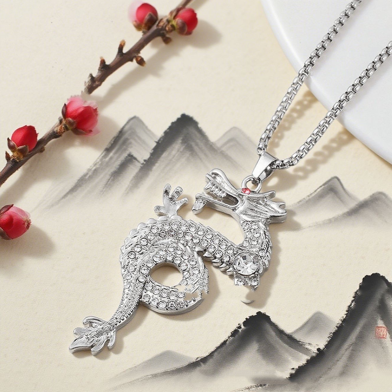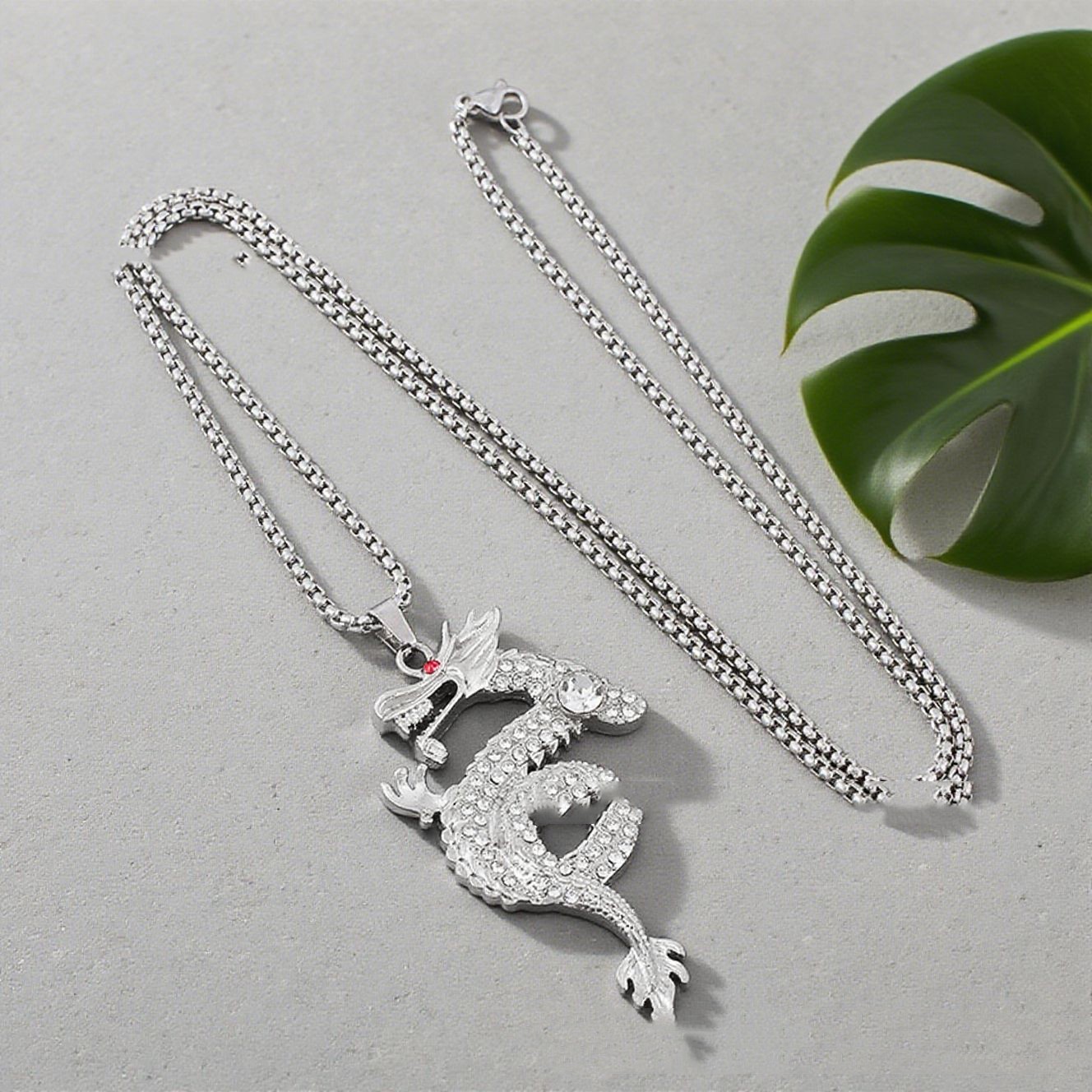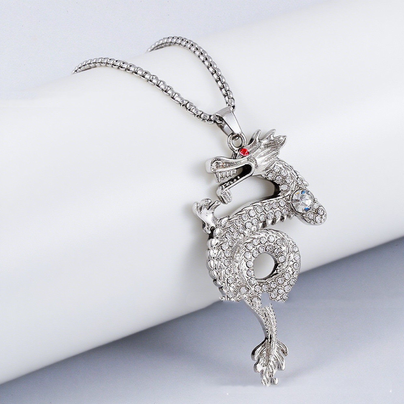 Product information:Treatment Process: Electroplating Color: Silver Pendant material: Alloy Chain style: Regular chain Popular elements: Dragon