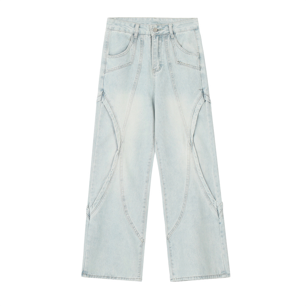 Fashion Washed And Worn Wide-leg Jeans Men