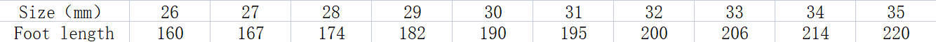 Size: 16cm inside 26, 16.7cm inside 27, 17.4cm inside 28, 18.2cm inside 29, 19cm inside 30, 19.5cm inside 31, 20cm inside 32, 20.6cm inside 33, 21.4cm inside 34, 22cm inside 35 and 36 22.5 cm