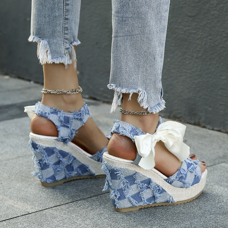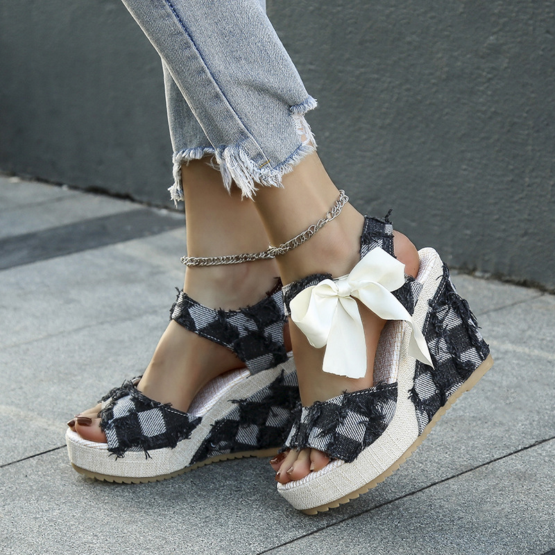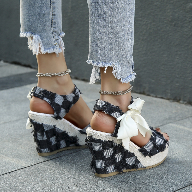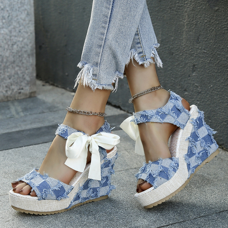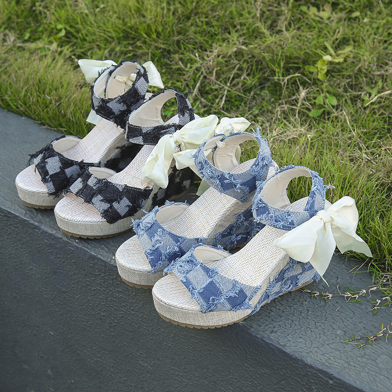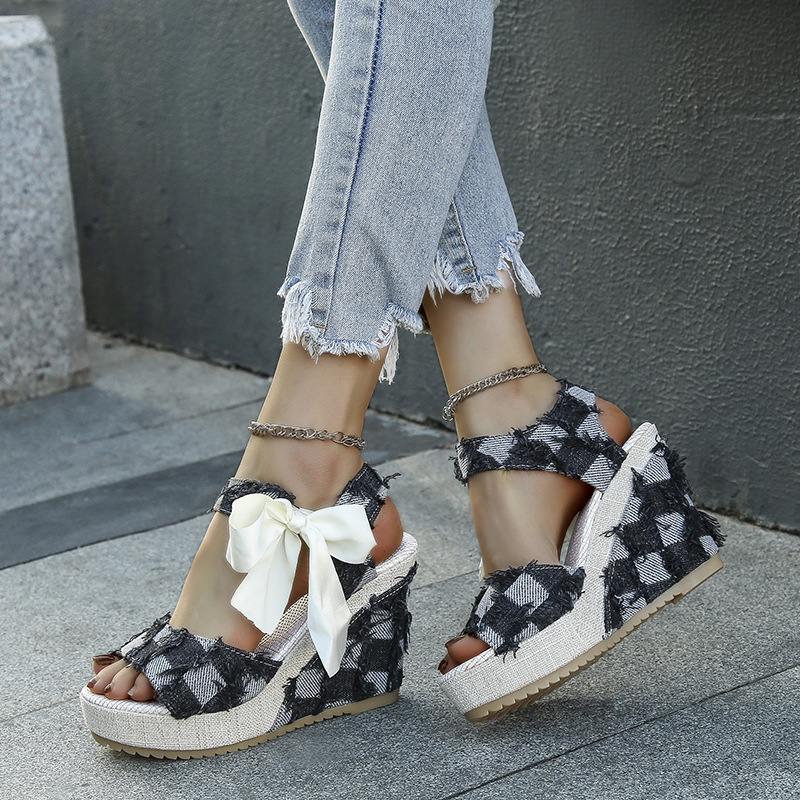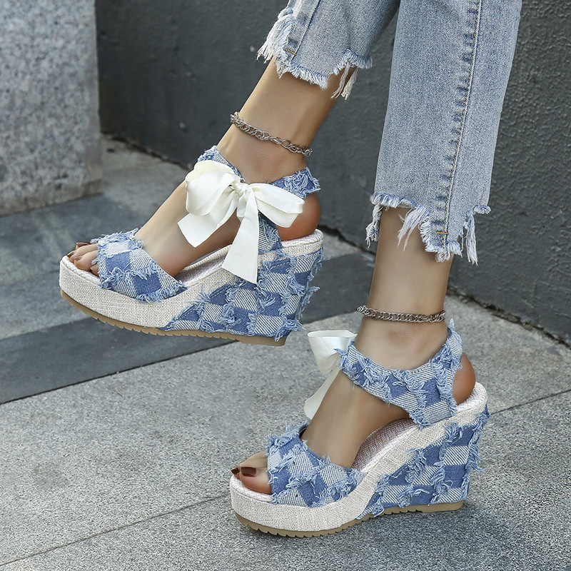 Fashion Wedge Peep Toe Bow Lace-up High Heel Platform Sandals