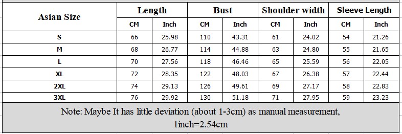 1. Asian sizes are 1 to 2 sizes smaller than European and American people. Choose the larger size if your size between two sizes. Please allow 2-3cm differences due to manual measurement.