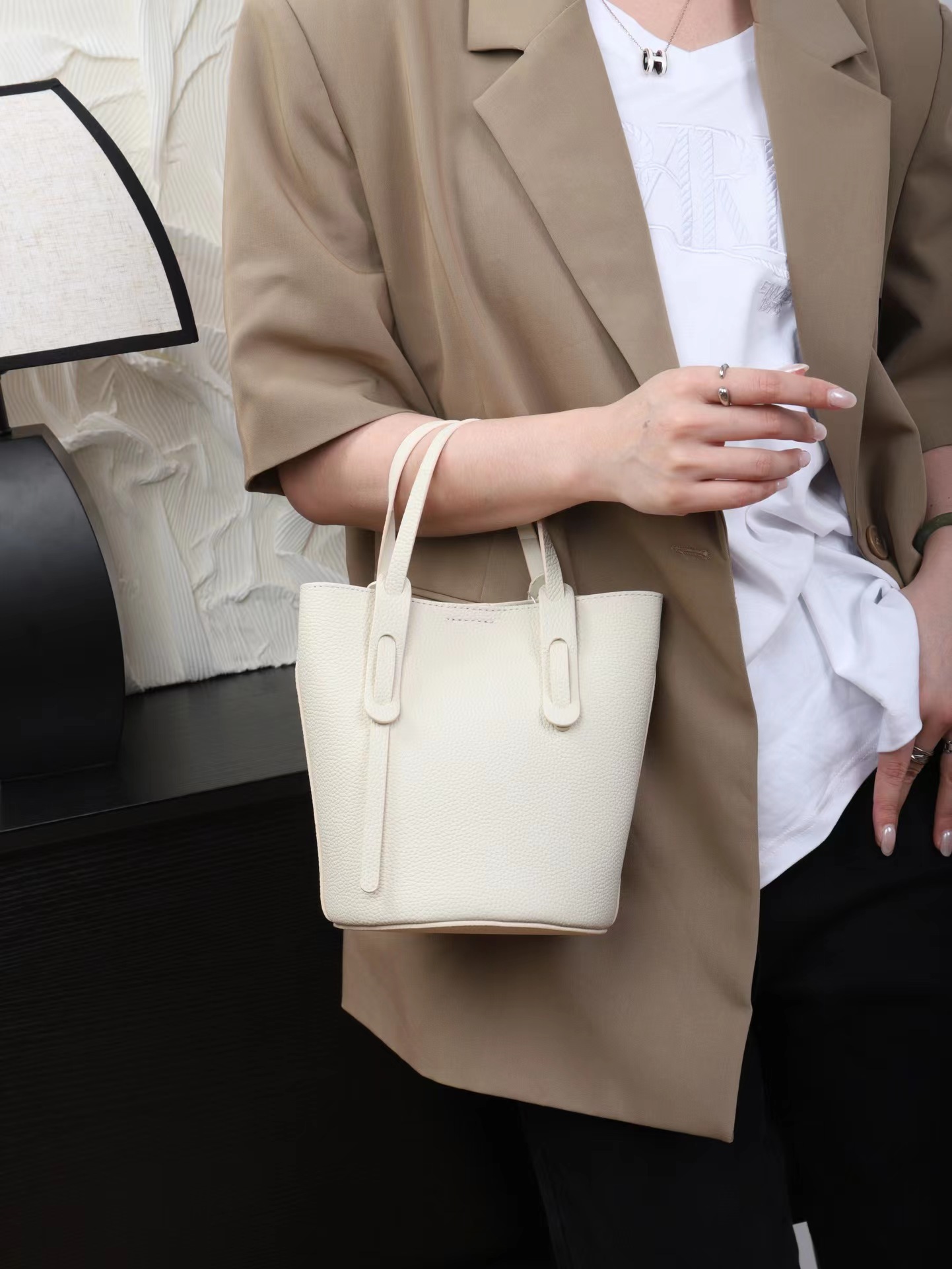 Color: caramel, khaki, light blue, purple, white, black