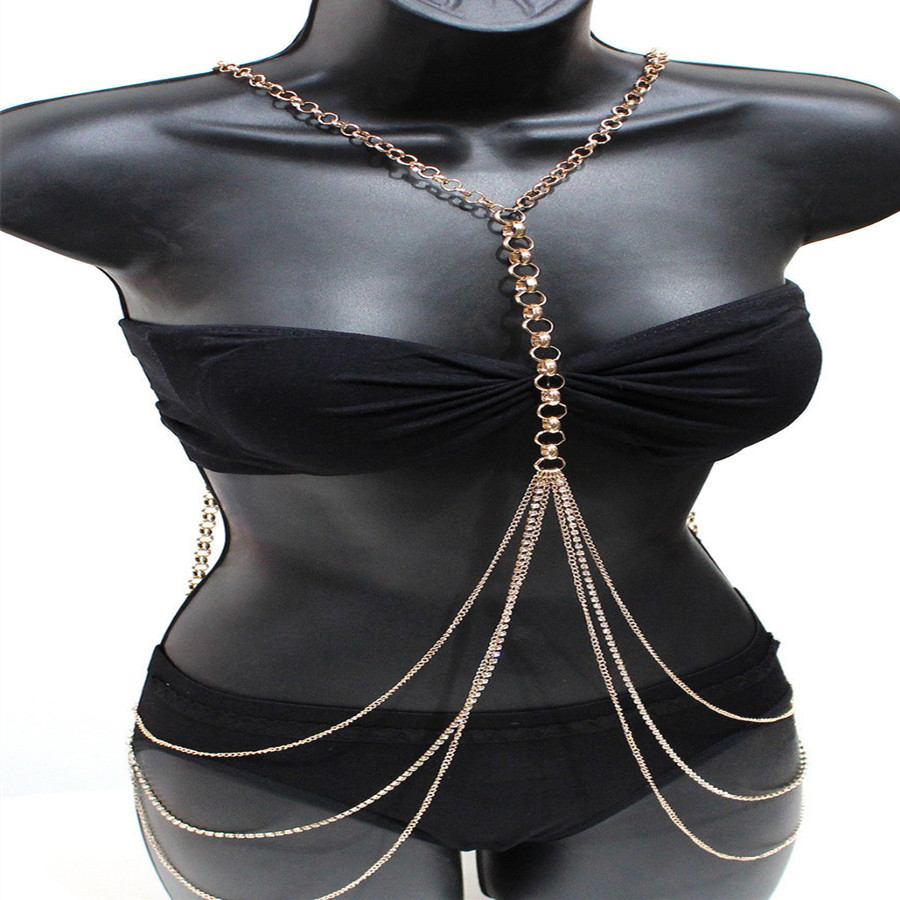 Material: AlloyTreatment process: electroplatingType: NecklaceStyle: Women'sModeling: body chainColor: gold, silver