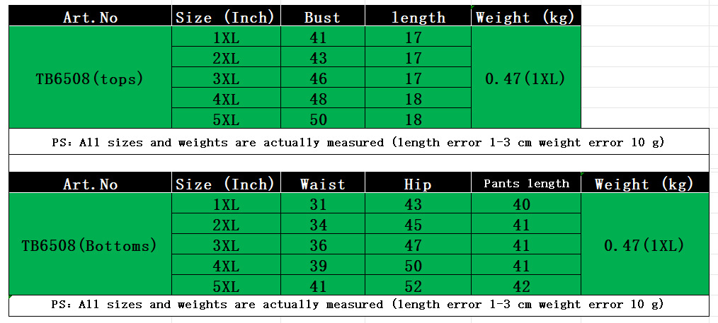 Size: 1XL, 2XL, 3XL, 4XL, 5XL