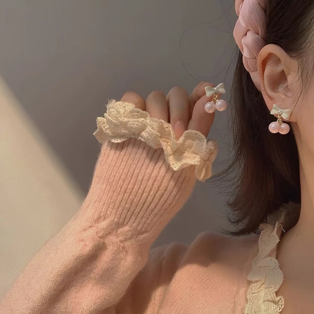 Color: pink cherry 925 silver target, pink cherry mosquito-repellent incense ear clip pair