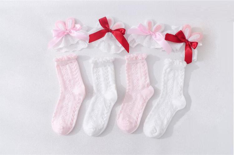 Color classification: white socks pink bow, pink socks pink side ears, white socks wine red bow