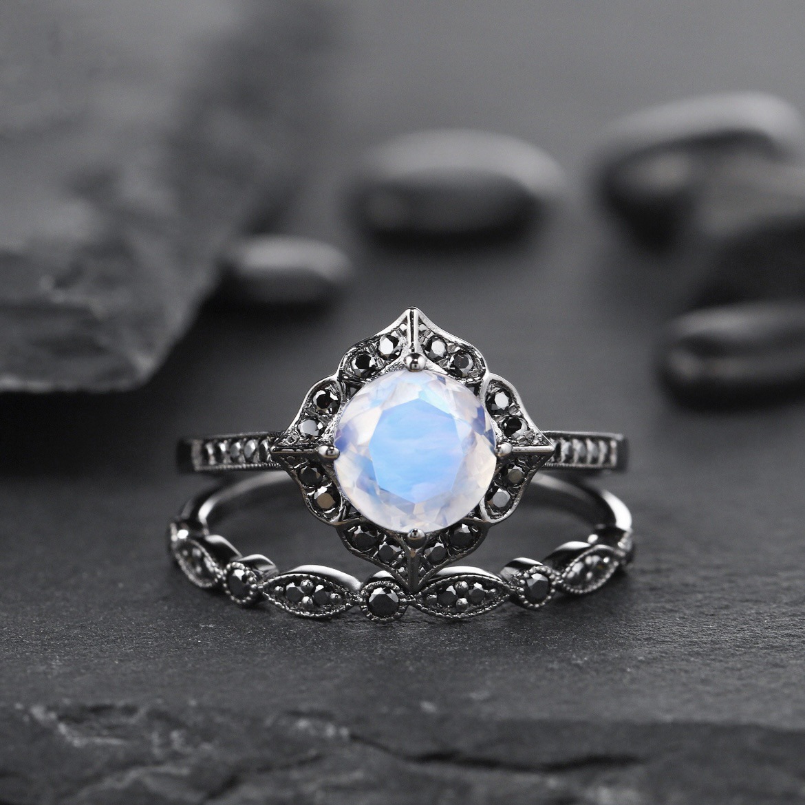 Color: Gun black Moonstone