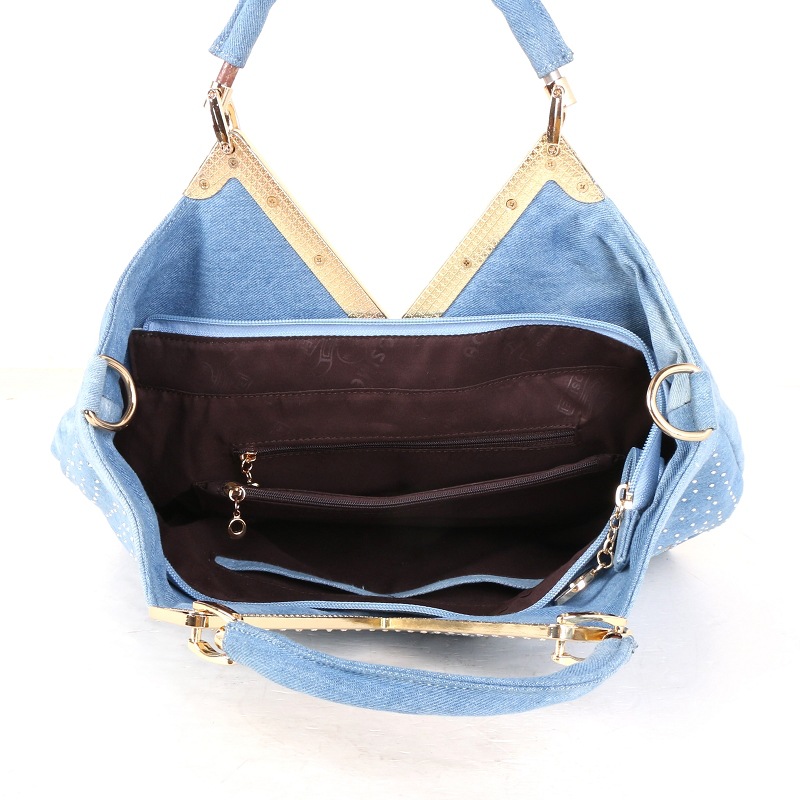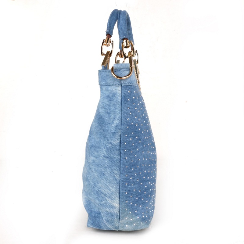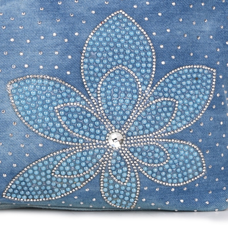 Fashion Women's V-shaped Diamond Flower Denim Bag