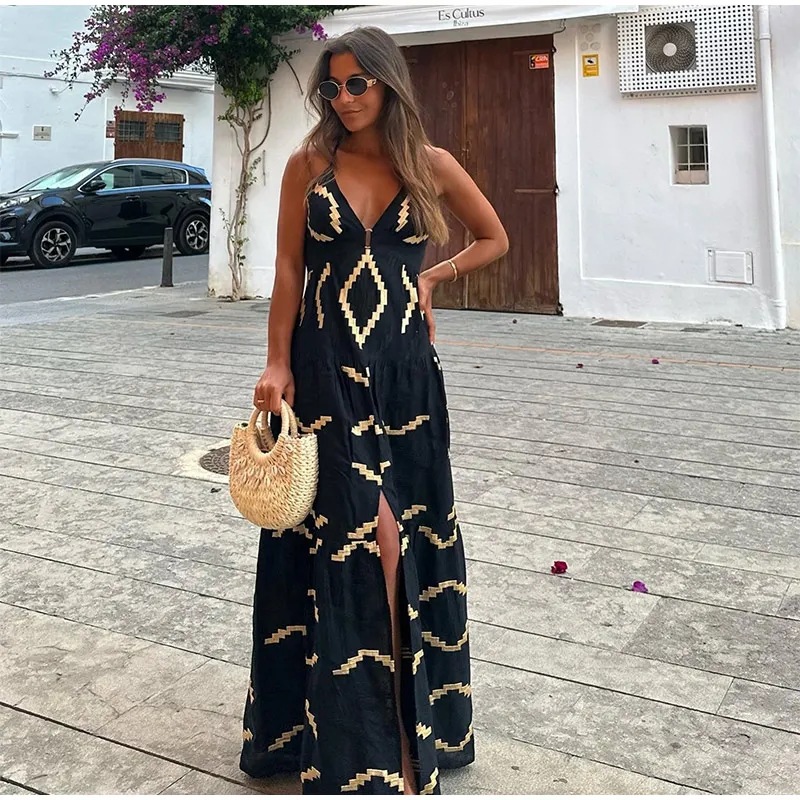 Fashion Women's Wear V-neck High Waist Sling Dress