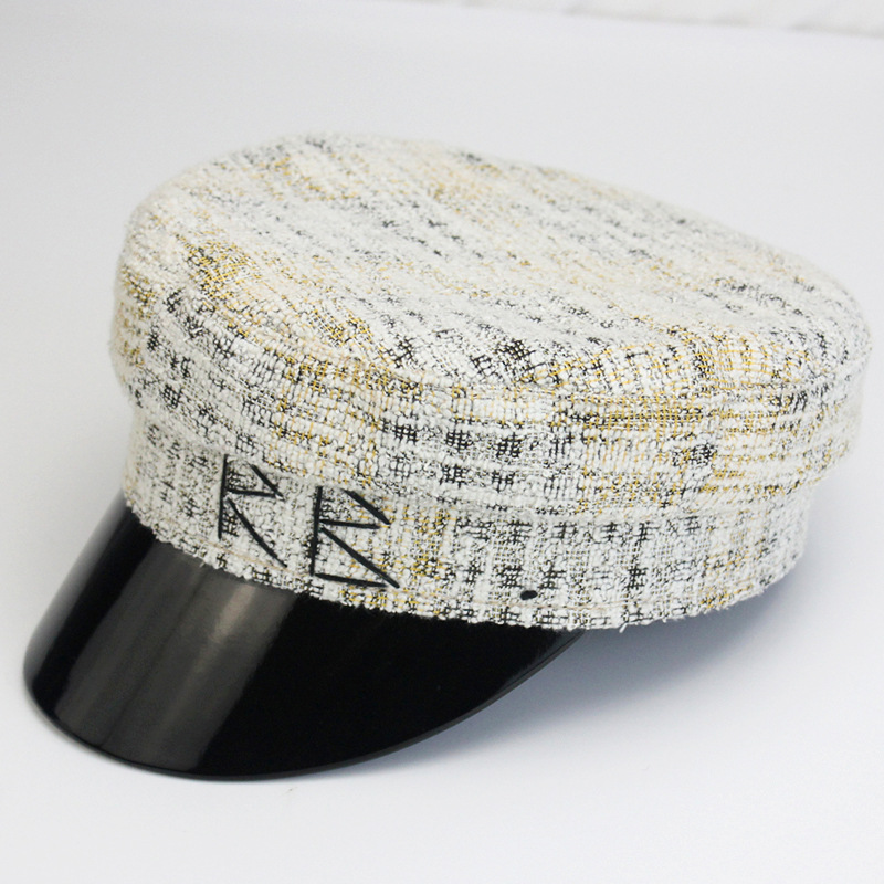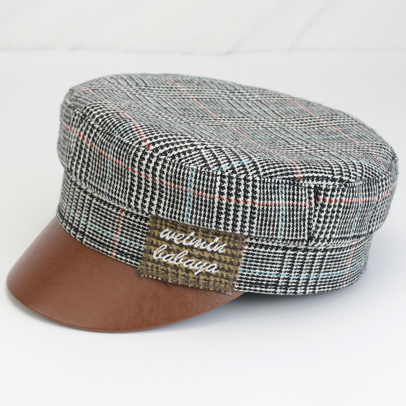 Color: black woolen cloth + hat brim diamond, black woolen cloth + surface RB hand-sewn diamond, black denim + integrated diamond, black and white grid + black RB embroidery, yellow grid + black RB embroidery, black woolen cloth + PU hat brim + red RB Embroidered characters, khaki woolen cloth + PU brim + red RB embroidery characters, pink houndstooth checkered + pink hat brim + integrated diamond, pink houndstooth checkered + pink hat brim + RB embroidery, black woolen cloth + red edging hat brim + RB embroidery Words, khaki hat head + beige brim + RB embroidered characters, houndstooth hat head + brown brim + English embroidered characters