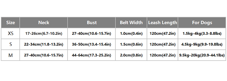 Suit for: dogs within 9.5kg-20kg (20.9-44.1lbs)