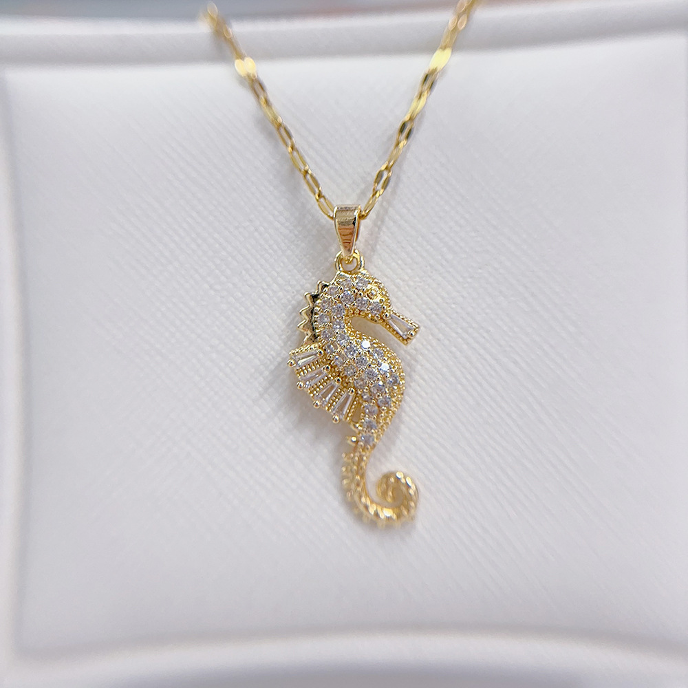 Color: Diamond seahorse necklace gold