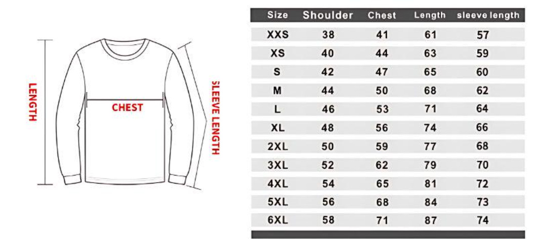 Sizes: S, M, L, XL, 2XL, 3XL, 4XL, 5XL
