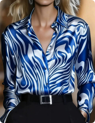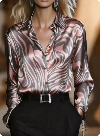 Fashionable Abstract Animal Print Satin Commuter Slim-fit Long-sleeve Shirt
