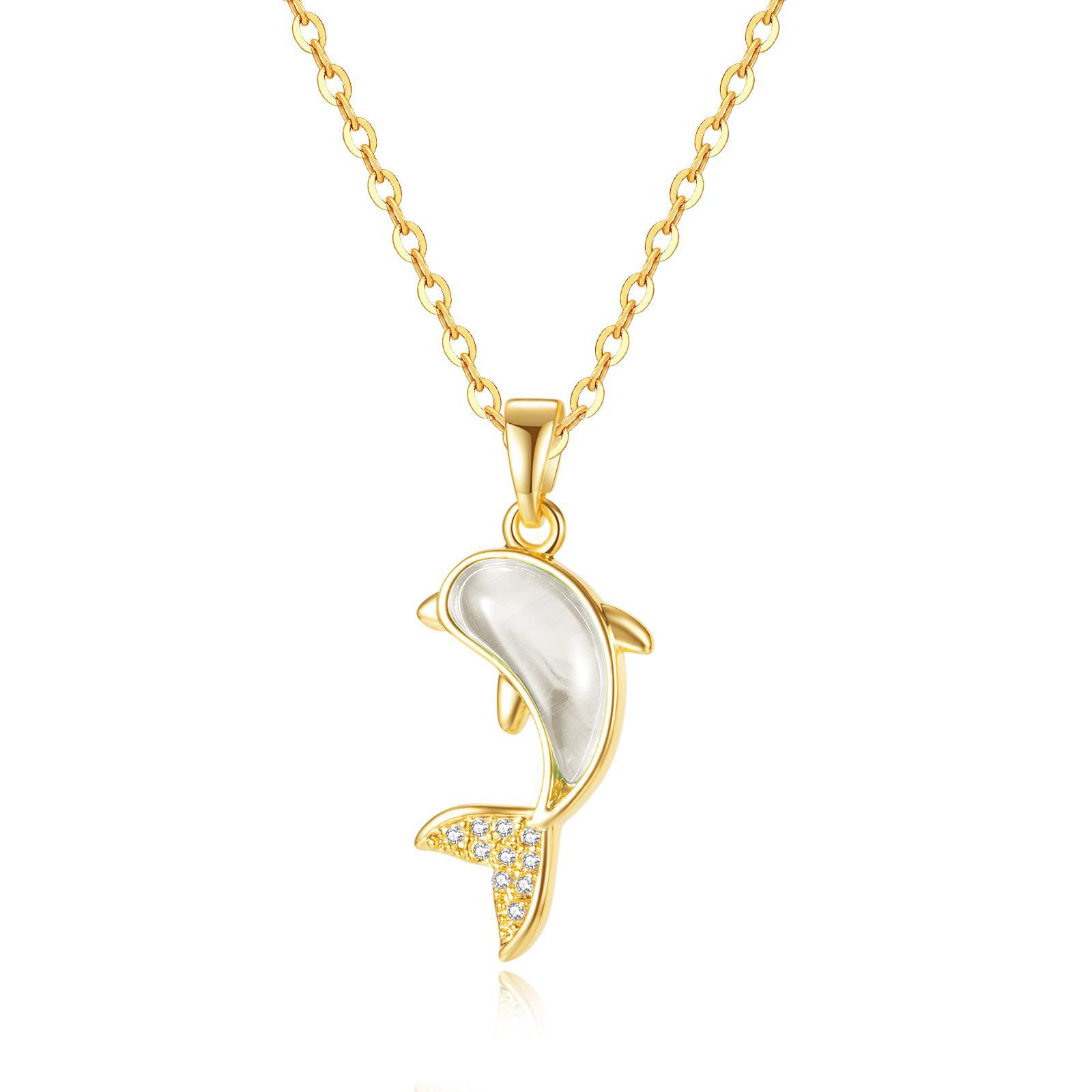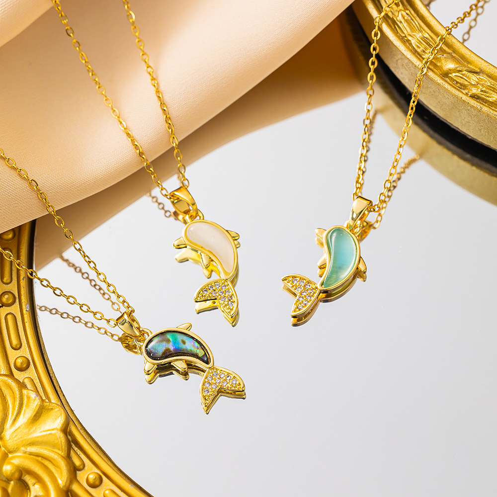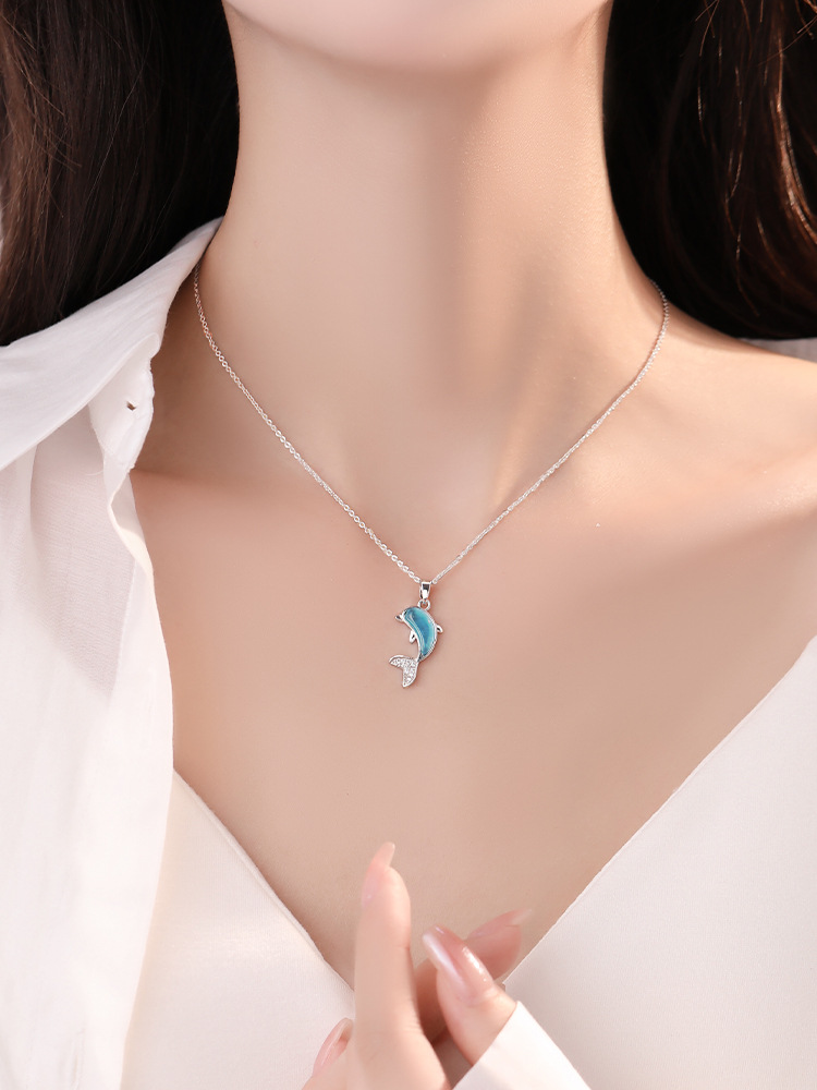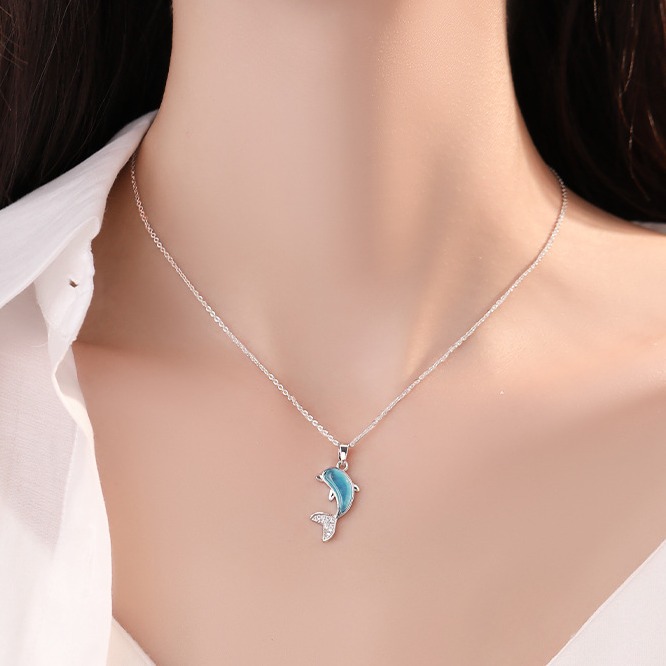 Color: L9129 White Dolphin necklace gold, L9130 Blue Dolphin necklace gold, L9130 Blue Dolphin necklace steel, L9131 color dolphin necklace gold