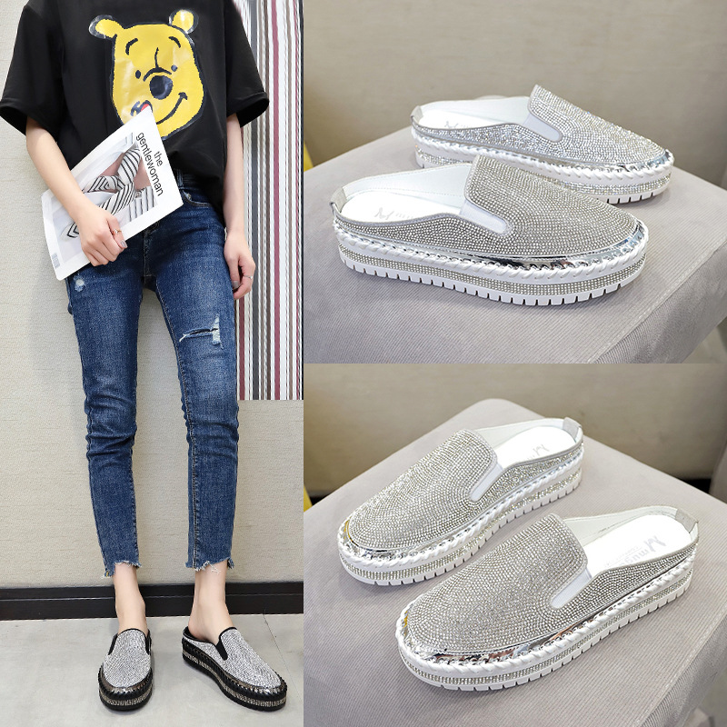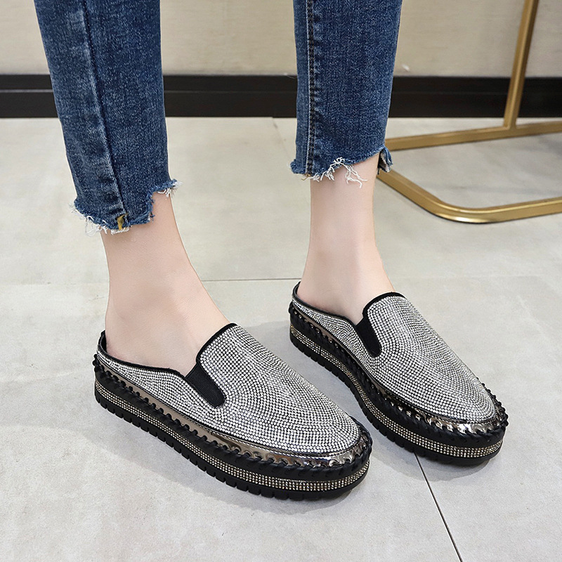 Fashionable All-match Heelless Casual Slip-on Half Drag Large Size Women's Shoes