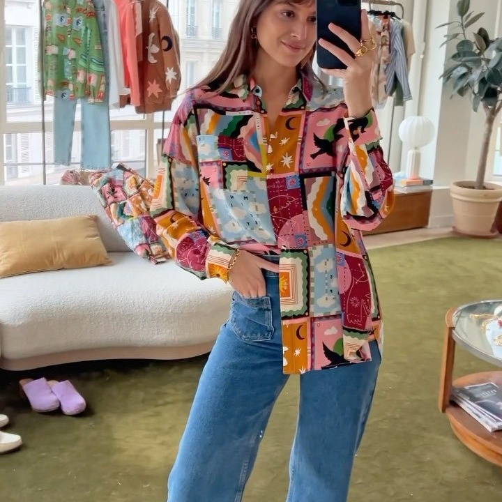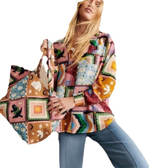 Fashionable All-match Printed Casual Cardigan Lapel Single Breasted Shirt