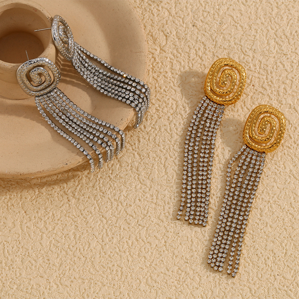 Color: full rhinestone tassel stud earrings-gold, full rhinestone tassel stud earrings-steel color