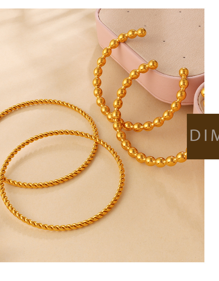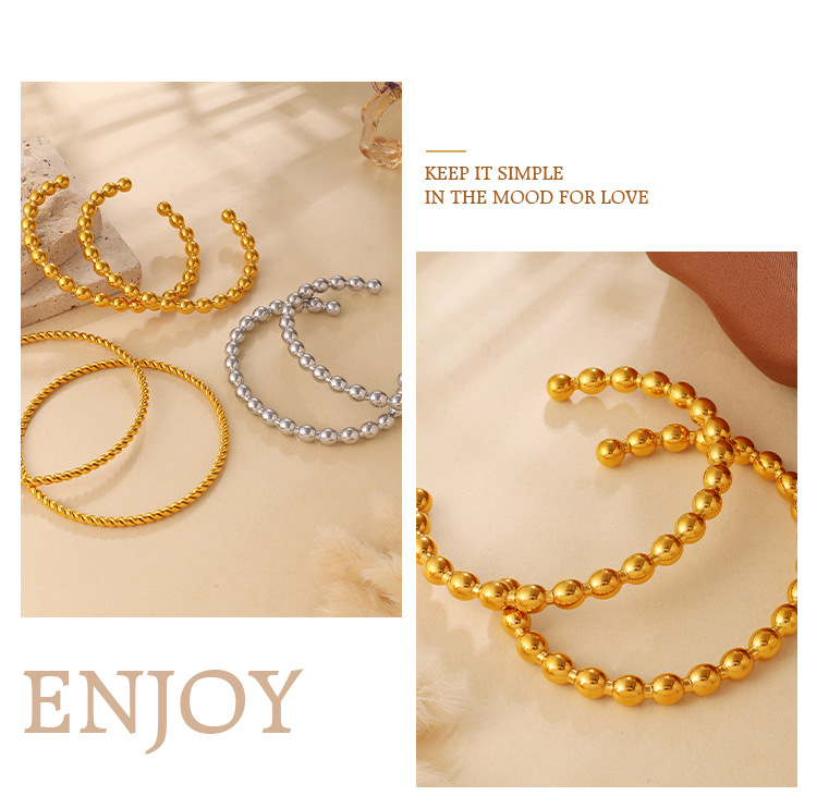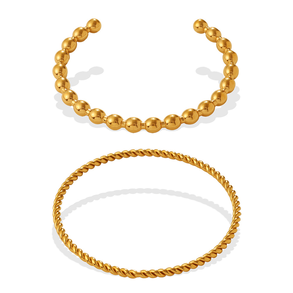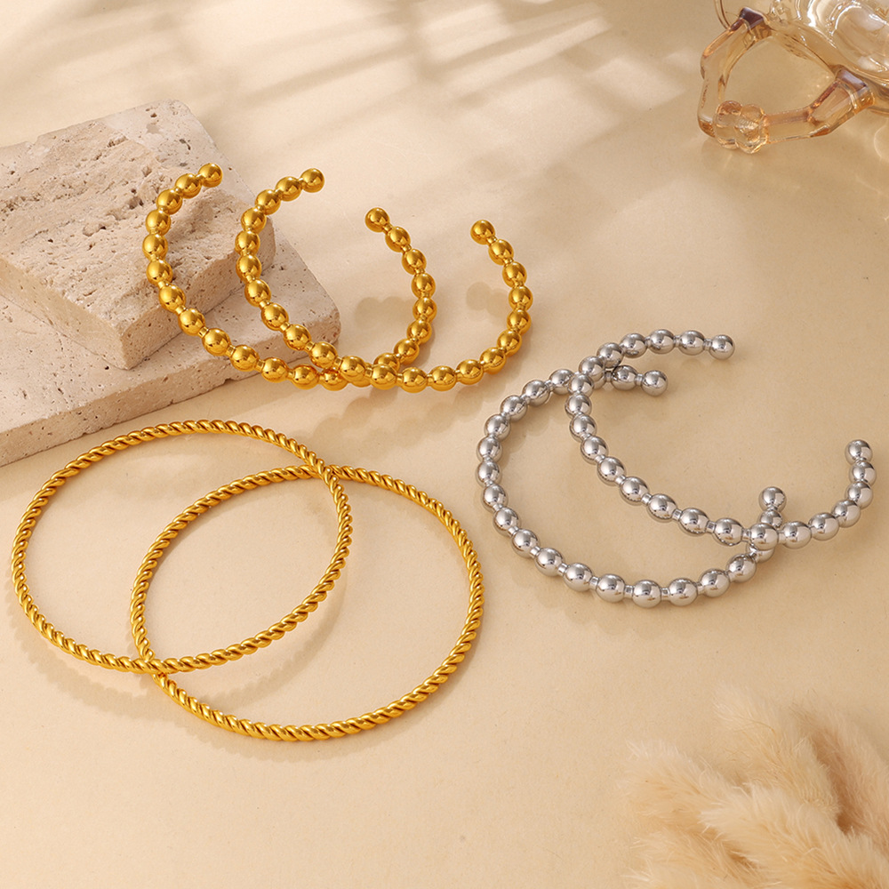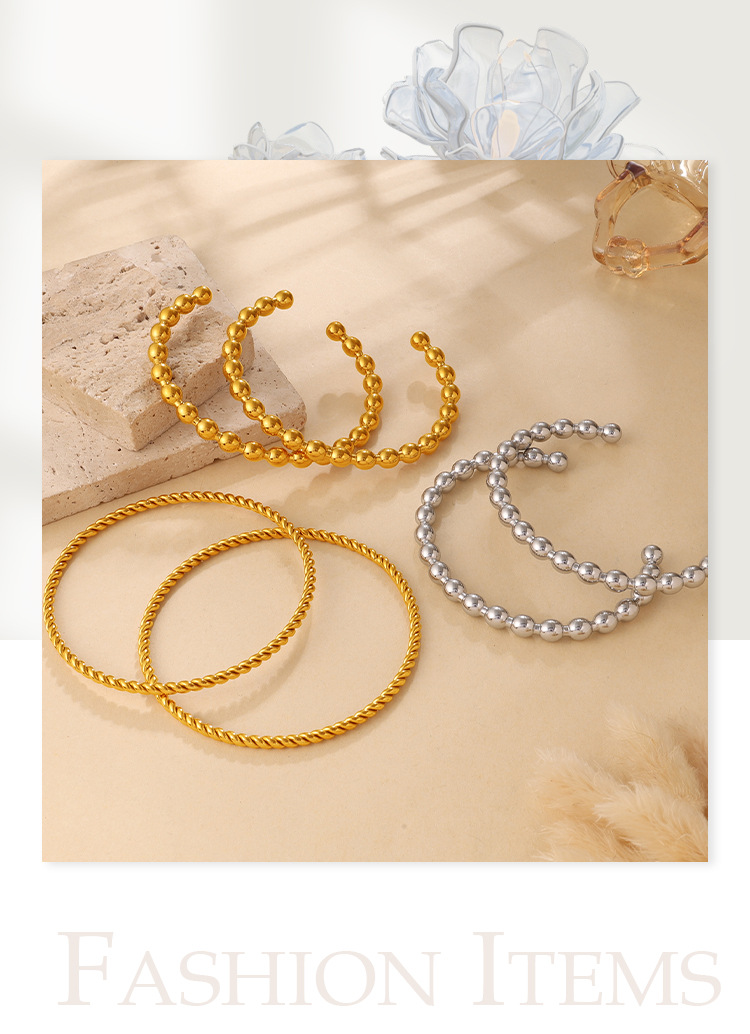 Fashionable And Simple Daily Bead Twist Design Bracelet, Stainless Steel With 18K Gold Plating, Open Bangle For Women.