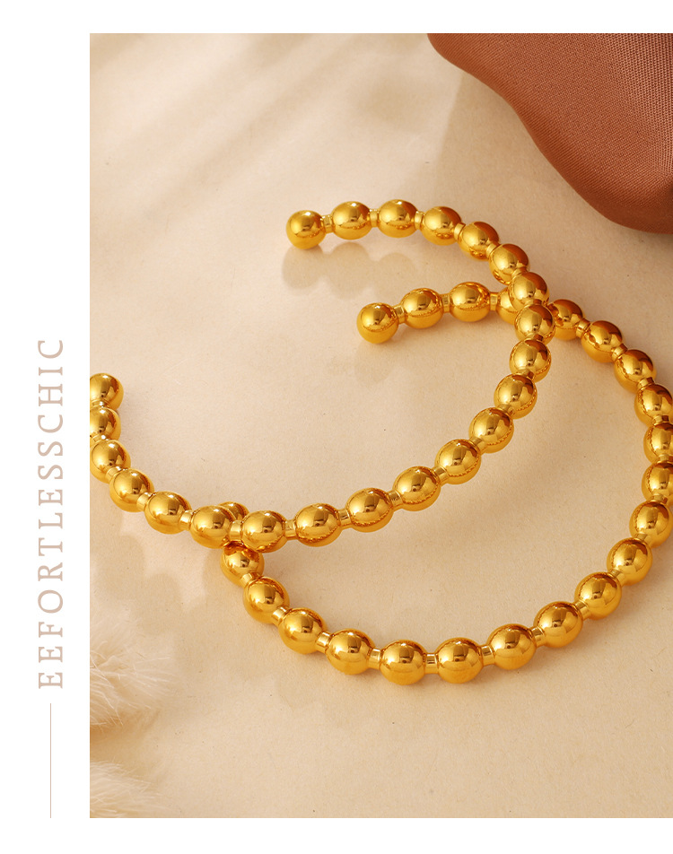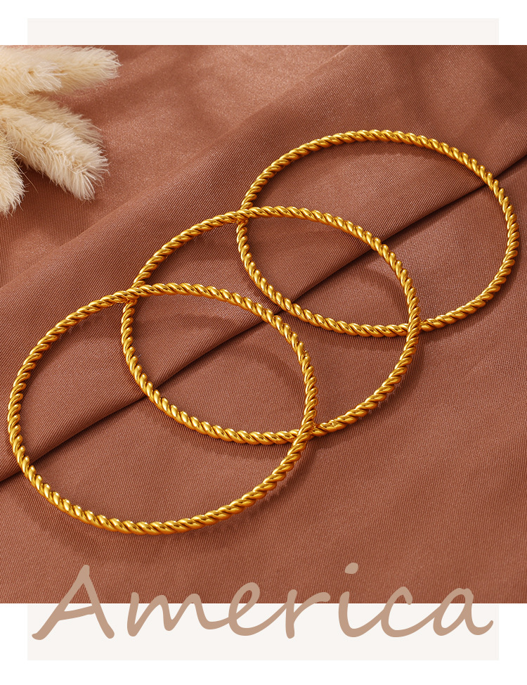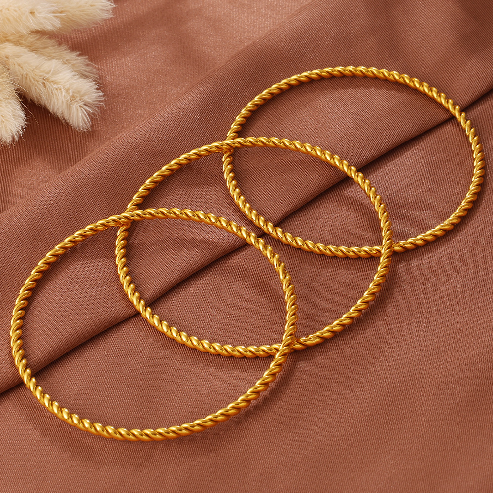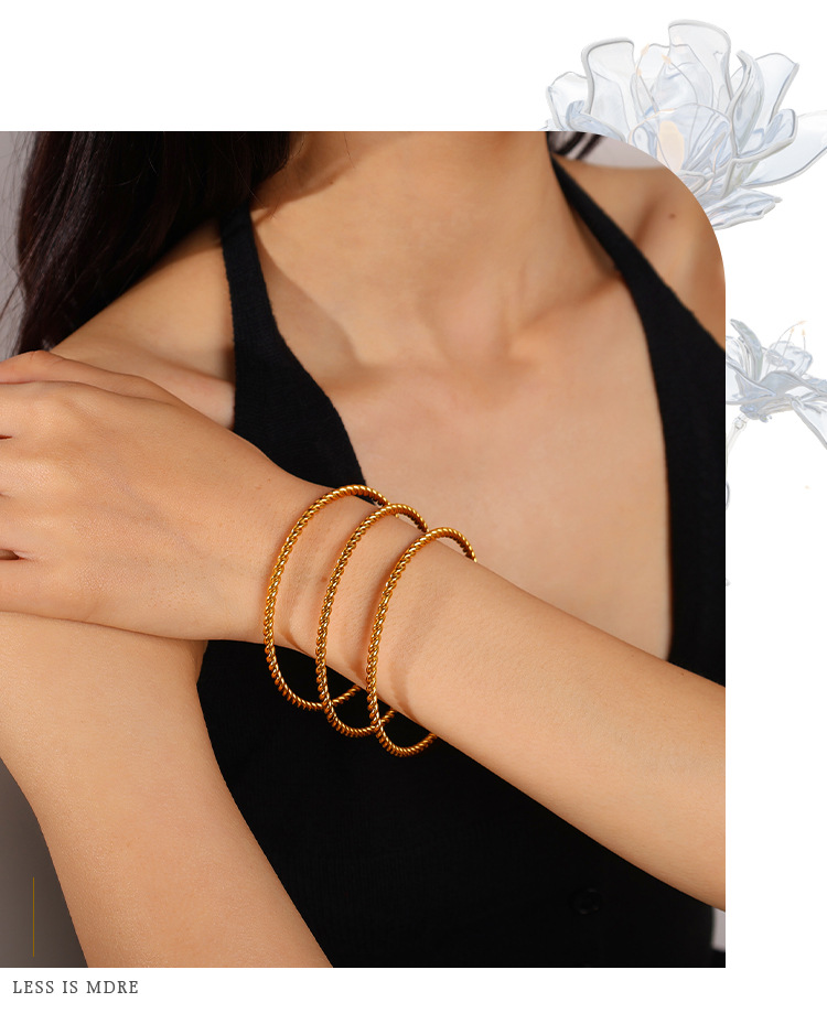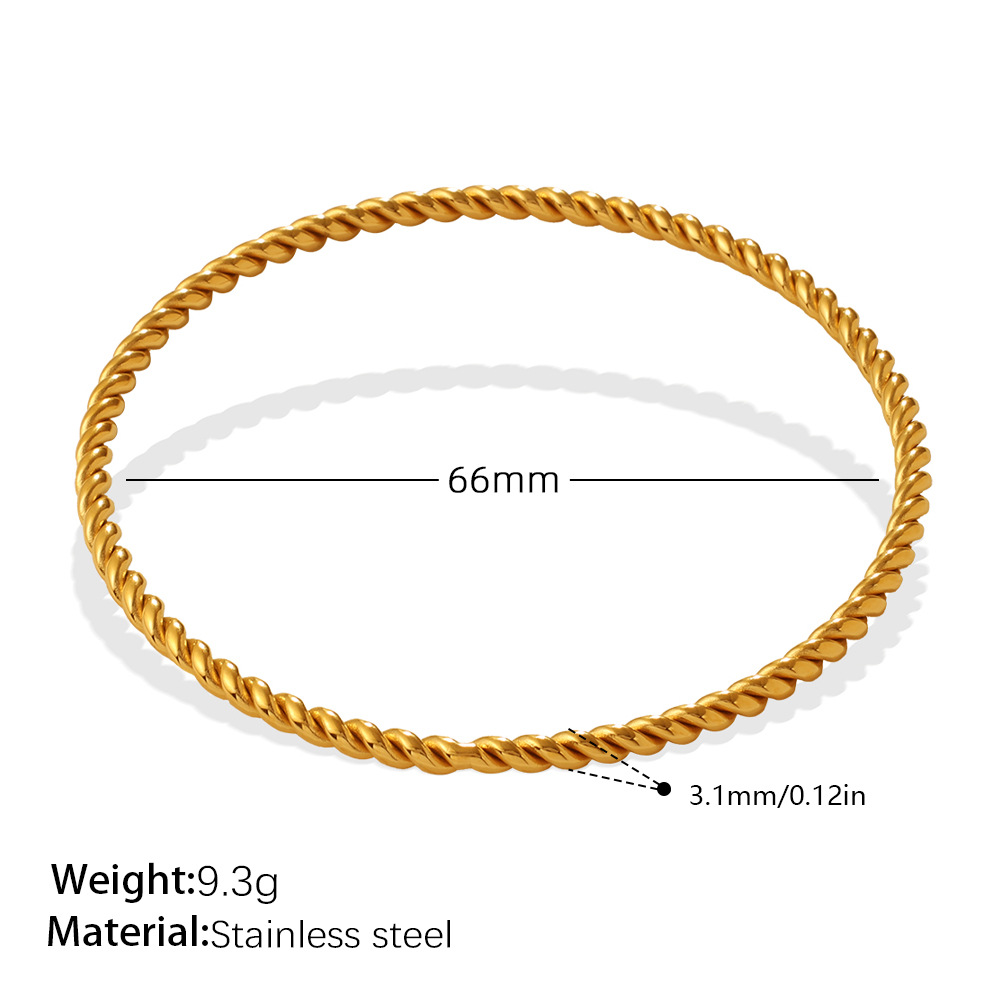 Fashionable And Simple Daily Bead Twist Design Bracelet, Stainless Steel With 18K Gold Plating, Open Bangle For Women.