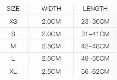 Specifications (length * width): XS: width 2cm* length 23-30cm, S: width 2cm* length 31-41cm, M: width 2.5cm* length 42-48cm, L: width 2.5cm* length 49-55cm, XL :Width 2.5cm*length 56-62cm