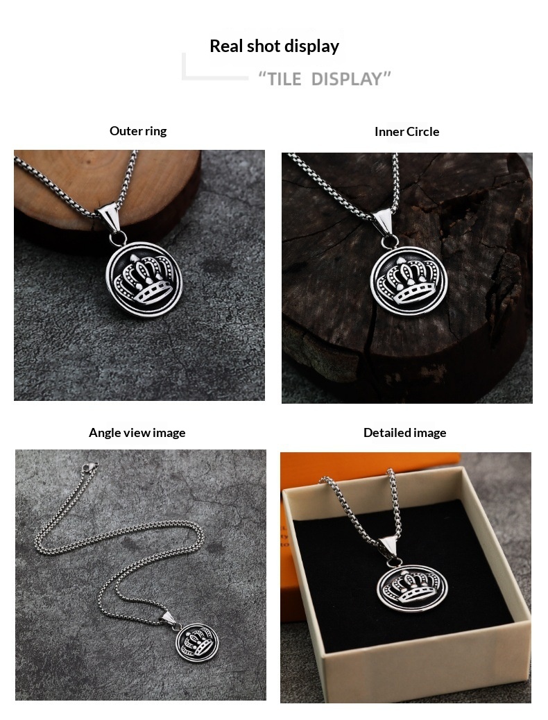 Colors: Steel-colored single pendant, pendant + 3.0-inch rib chain, pendant + 3.0-inch checkered chain