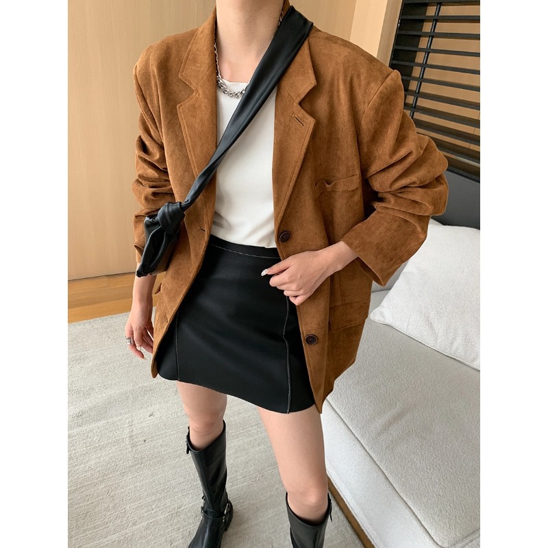 Fashionable Antique Style Artificial Suede Profile Loose Suit Jacket