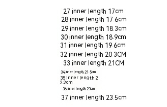 Size: 28 yards internal length/18. 0cm, the length is within 29 yards/18. 7CM, length within 30 yards/19. 3CM, the length is within 31 yards/20. 0CM, inner length 32 yards/20. 7CM, length within 33 yards/21. 4CM, inner length 34 yards/22. 0CM, inner length 35 yards/22. 7CM, inner length 36 yards/23. 3CM, the length is within 37 yards/24. 0CM, inner length 38 yards/24. 6CM, inner length 39 yards/25. 3CM,28-39 yards (starting from 12 pairs)