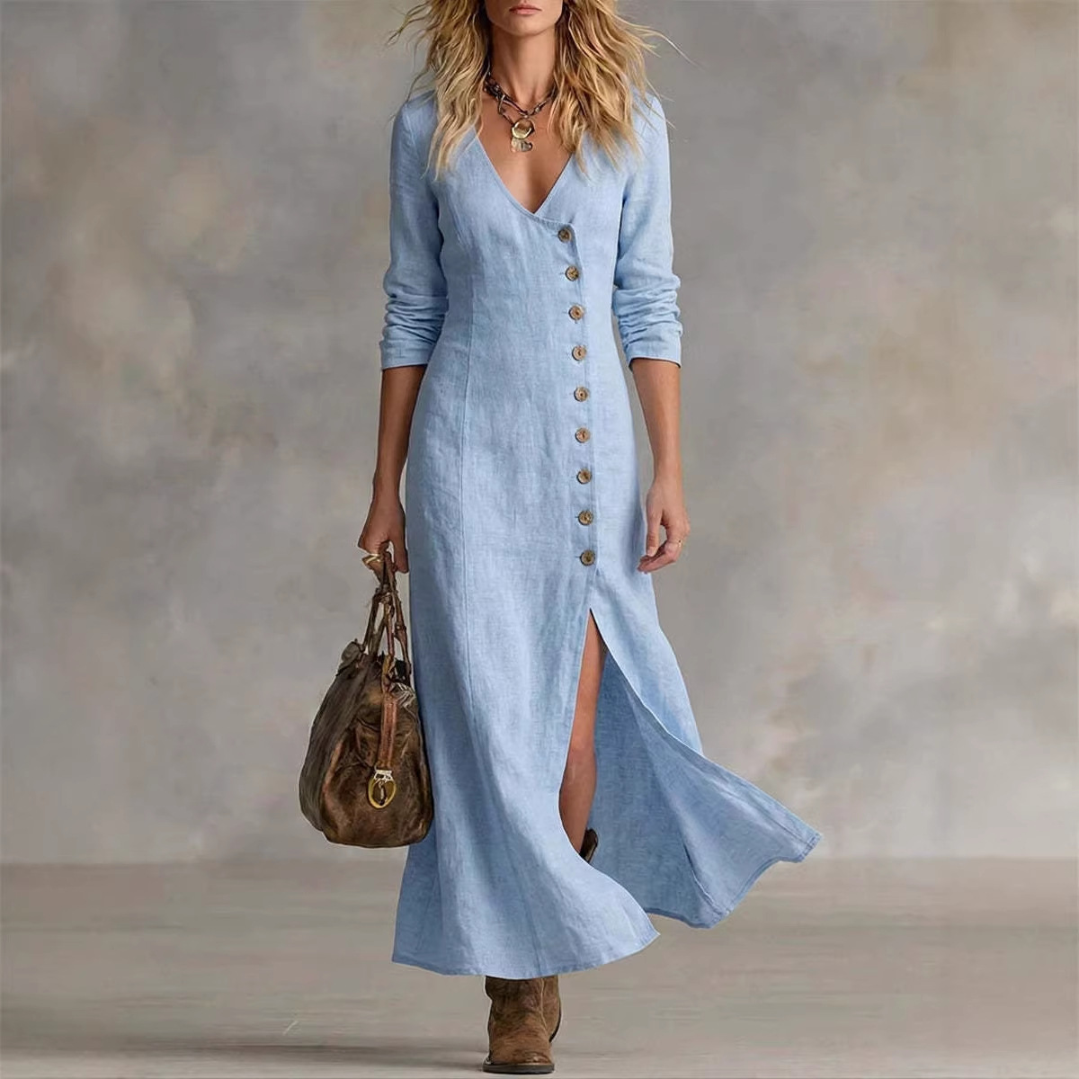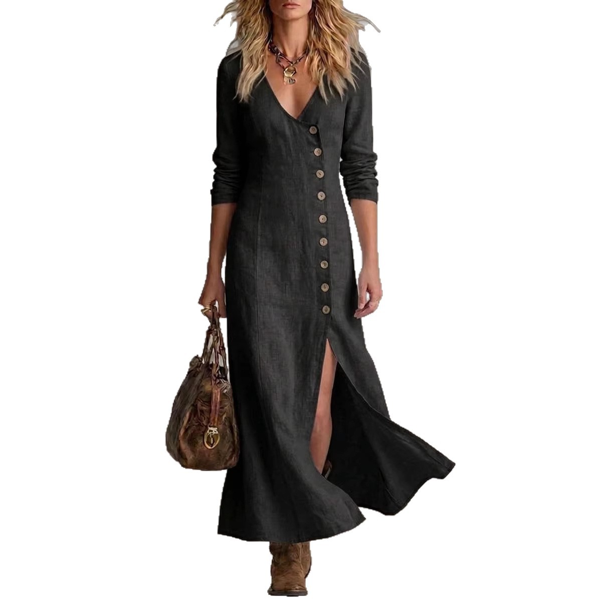 Features: Solid color, side-slit design, maxi length, slim fit, mid-rise waist