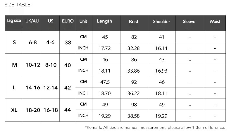 1. Asian sizes are 1 to 2 sizes smaller than European and American people. Choose the larger size if your size between two sizes. Please allow 2-3cm differences due to manual measurement. 2. Please check the size chart carefully before you buy the item, if you don't know how to choose size, please contact our customer service. 3.As you know, the different computers display colors differently, the color of the actual item may vary slightly from the following images.