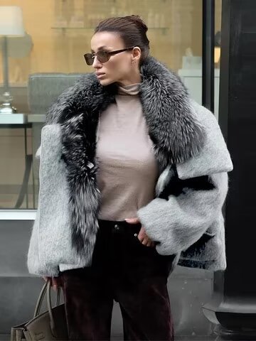 Material of fur collar: faux fur