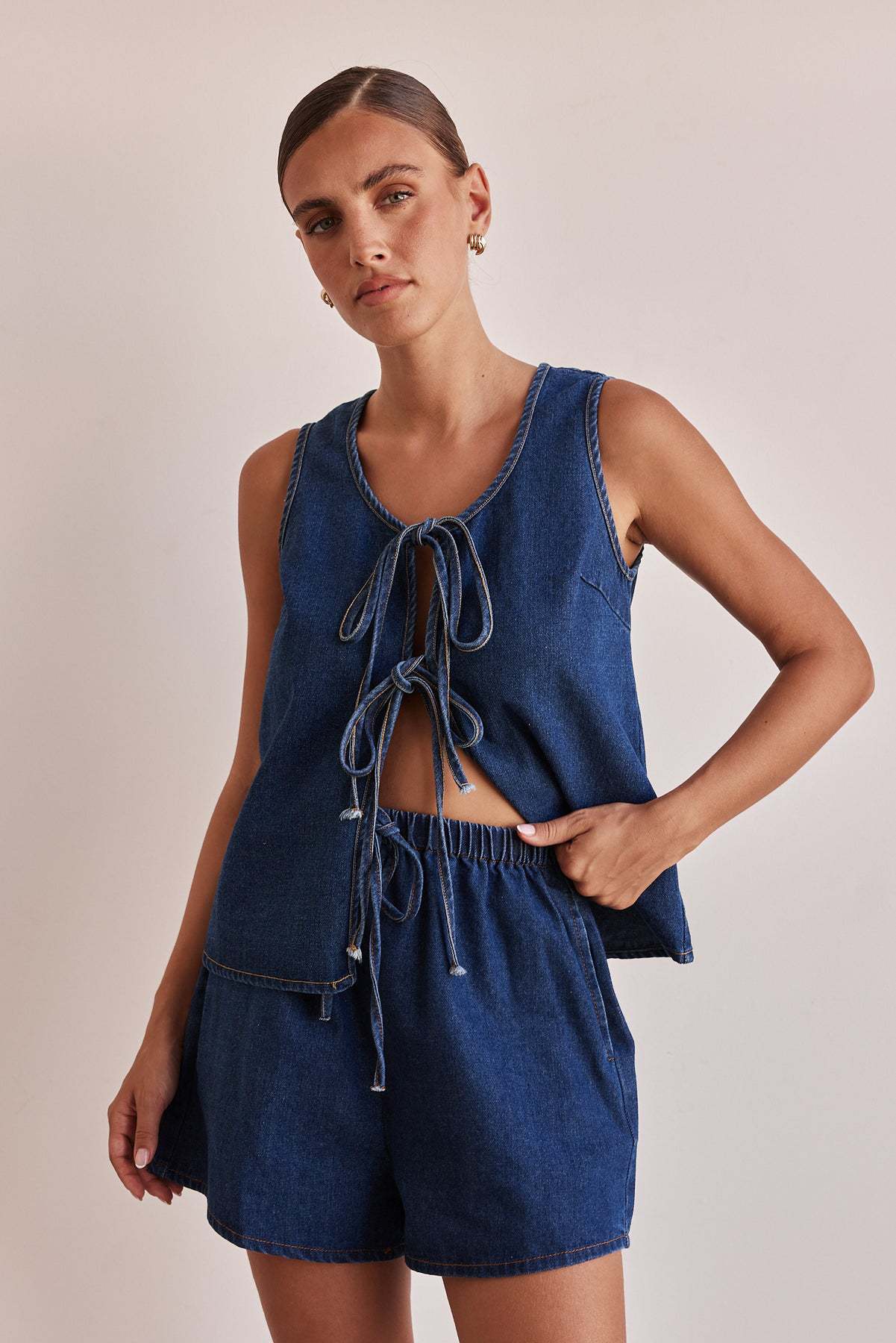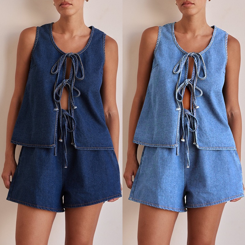 Colors: Dark blue top, dark blue shorts, dark blue top + shorts set, light blue top, light blue shorts, light blue top + shorts set