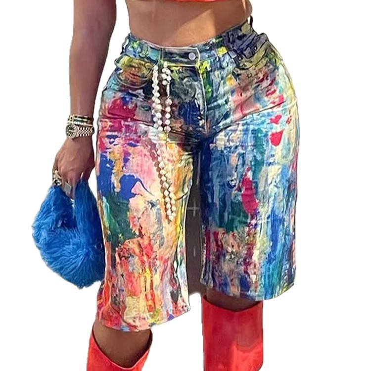 Fashionable Casual Straight-leg Pants Painted Shorts