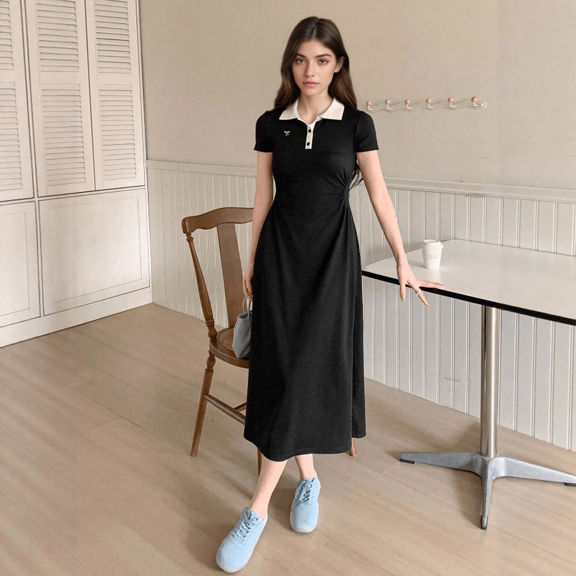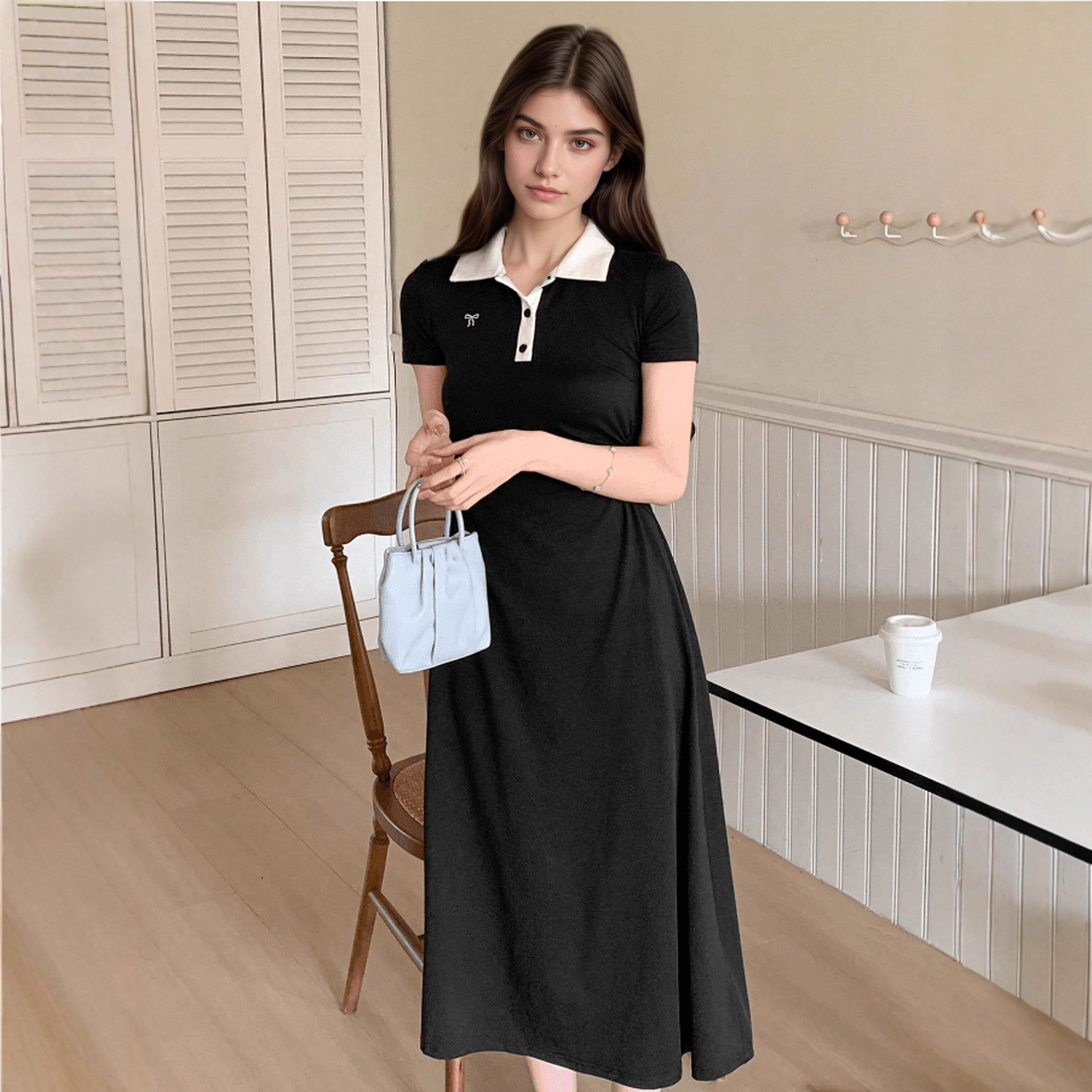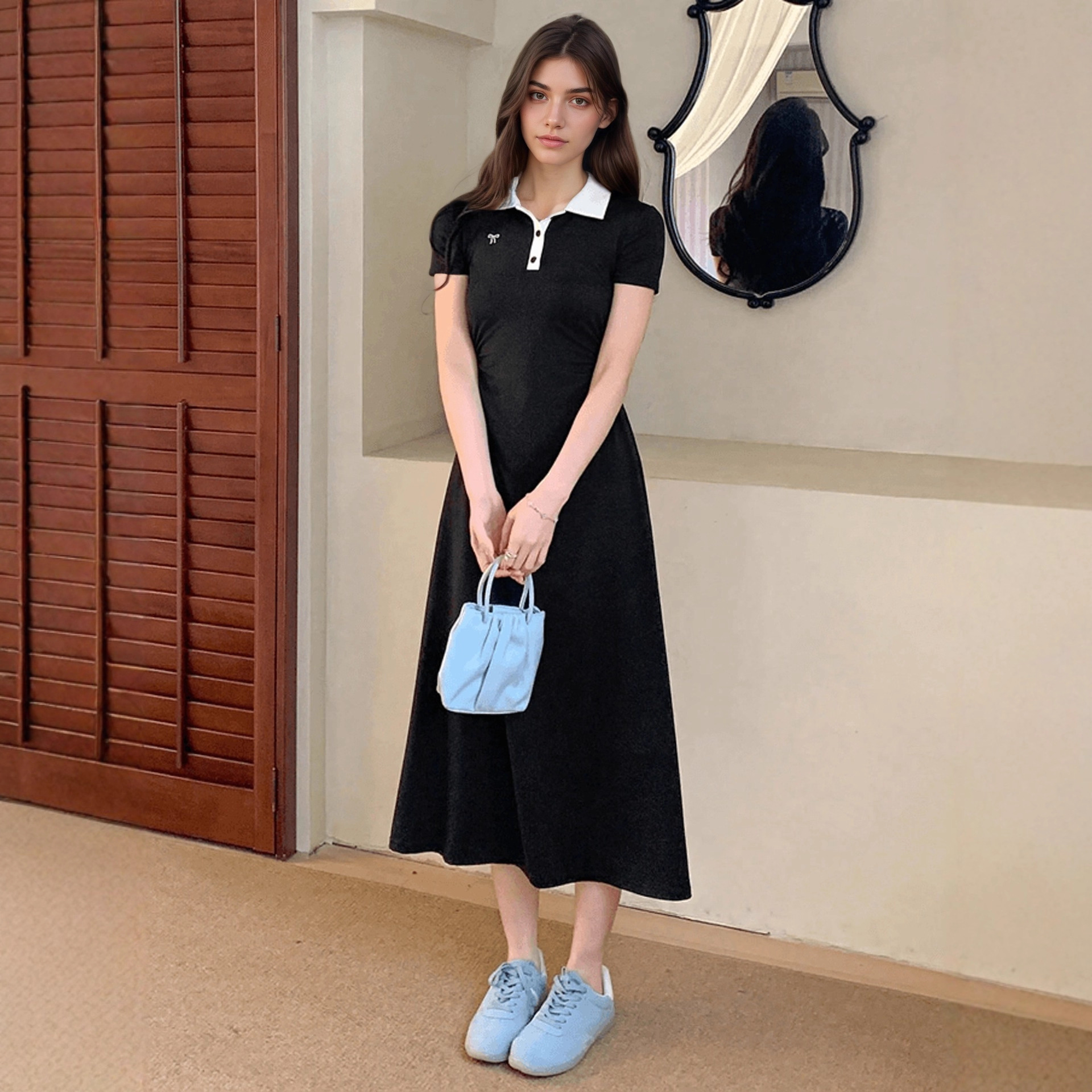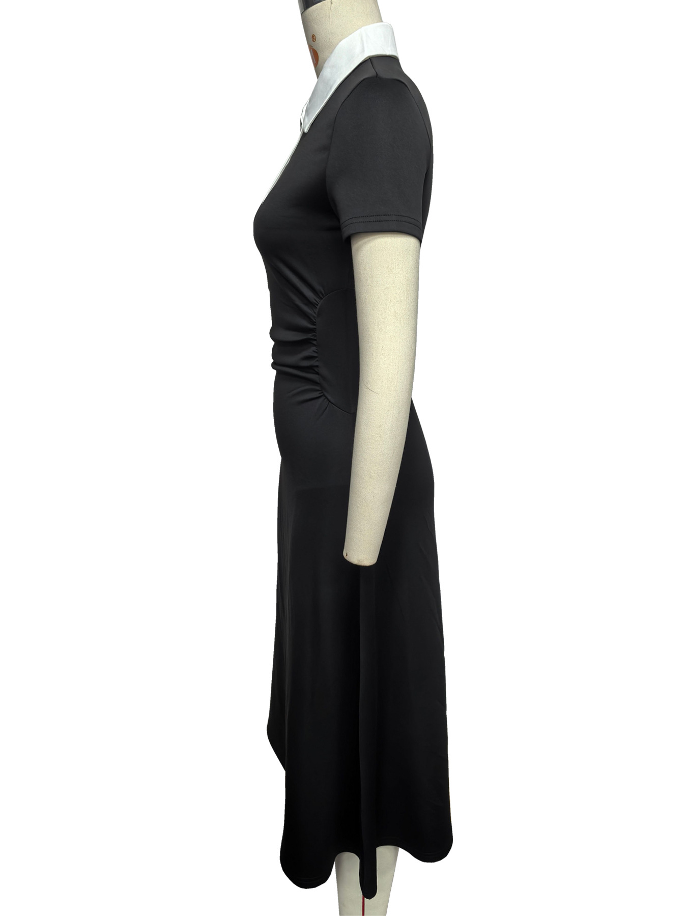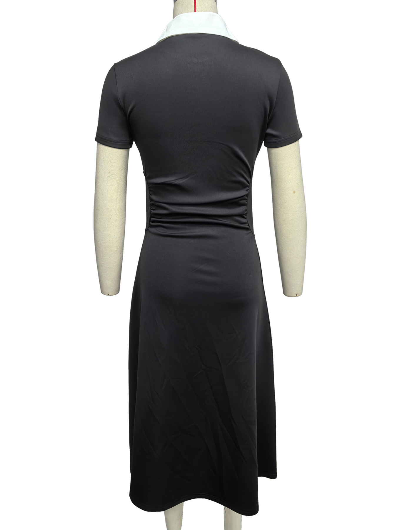Fashionable Contrasting Color Patchwork Lapel Dress Summer New Arrival