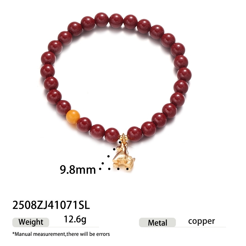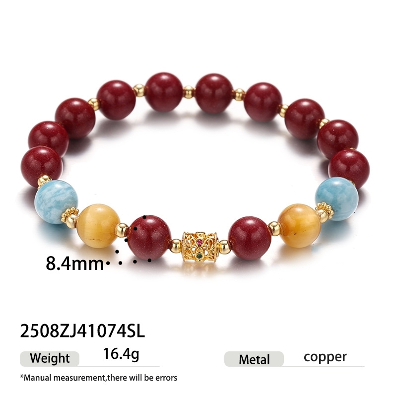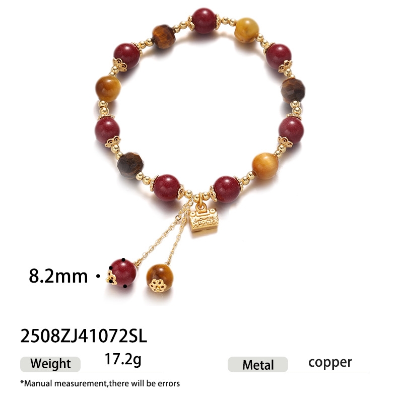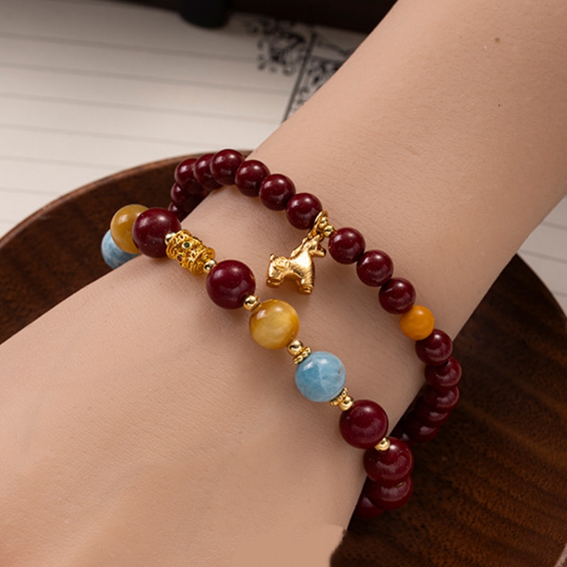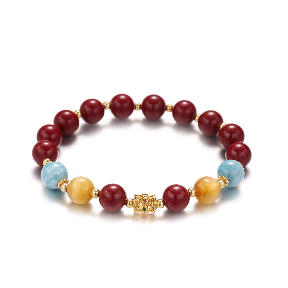 Fashionable Contrasting Natural Tiger Eye Stone Cinnabar Bead Bracelet