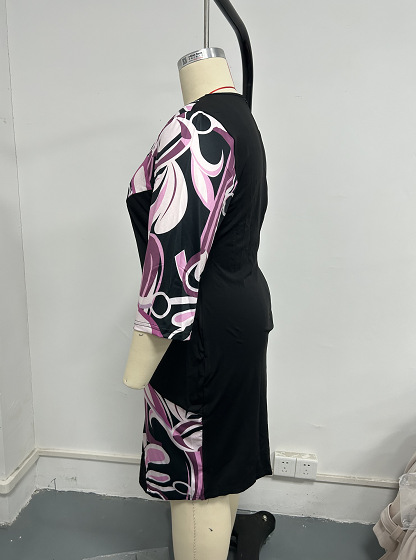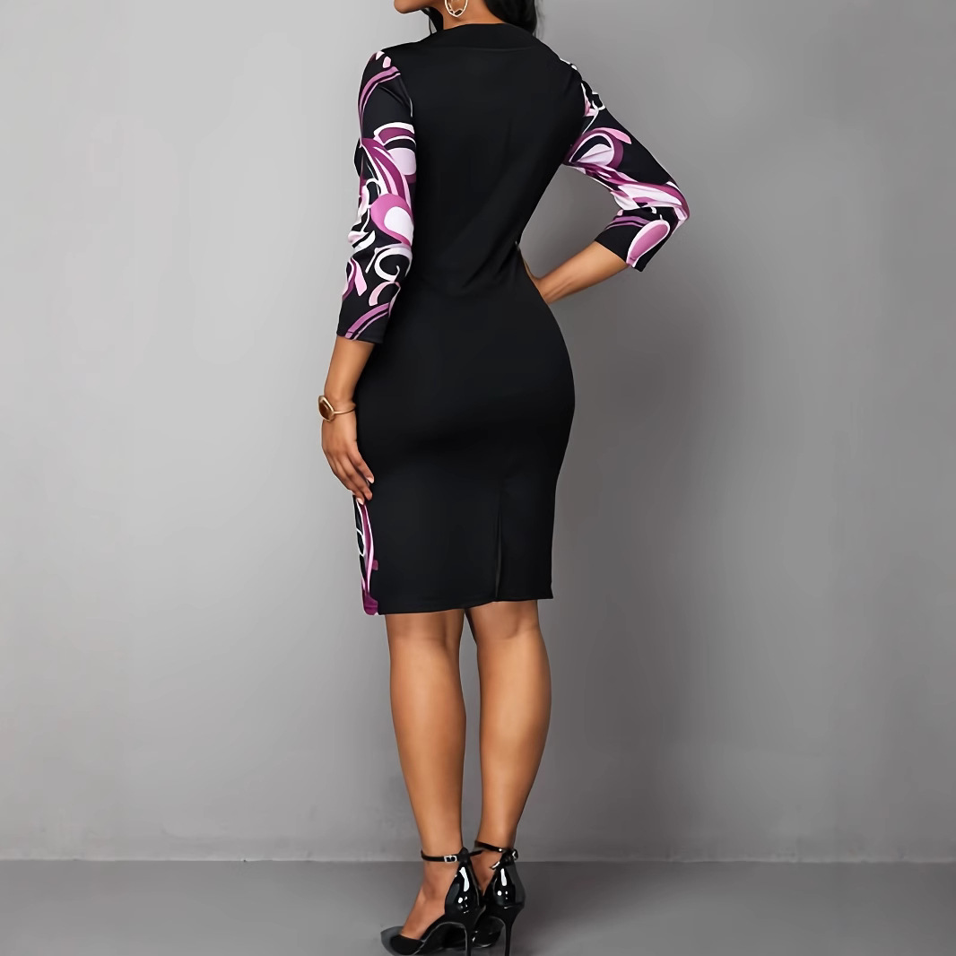 Fashionable Crew-Neck High-Waist Long-Sleeve Professional Sheath Dress
