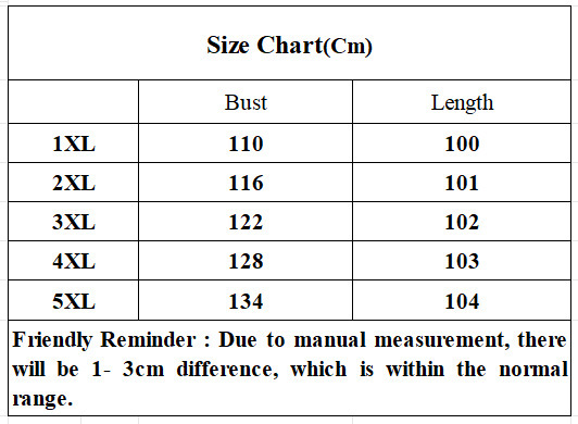 Sizes: 1XL, 2XL, 3XL, 4XL, 5XL