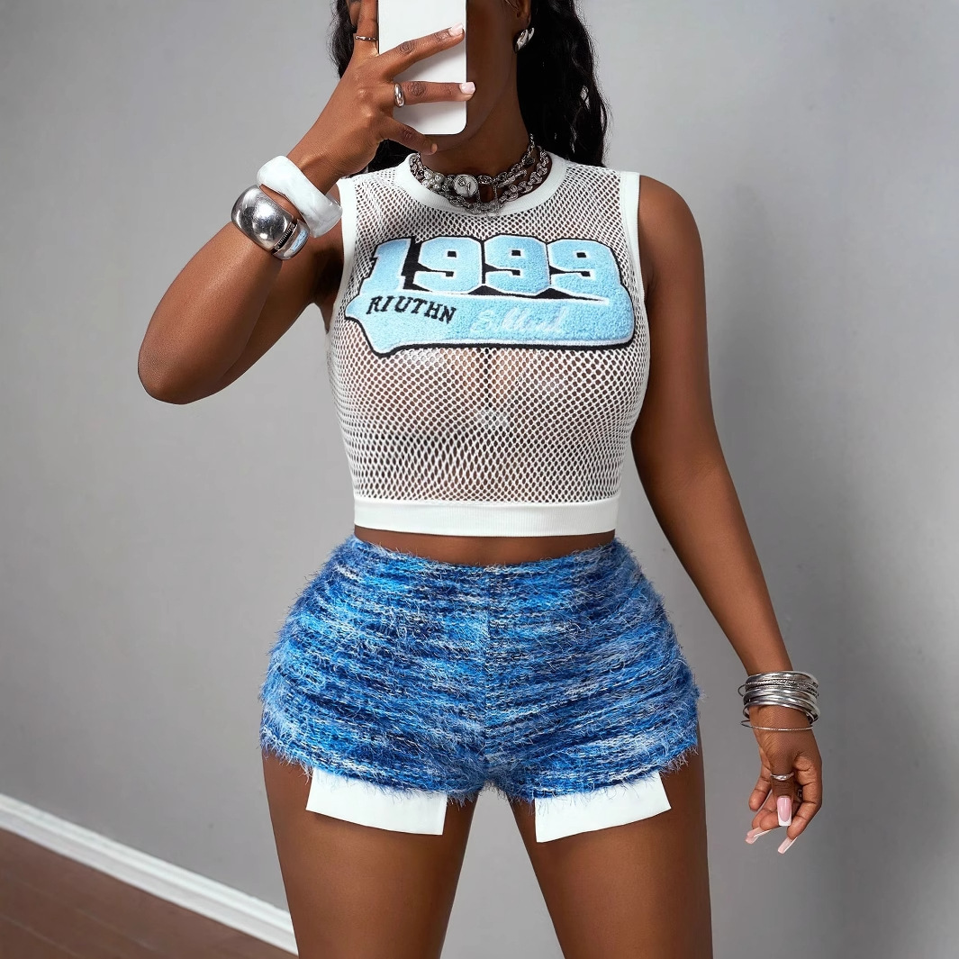 Fashionable Digitally Printed Hollow-out Crew-neck Embroidered Vest