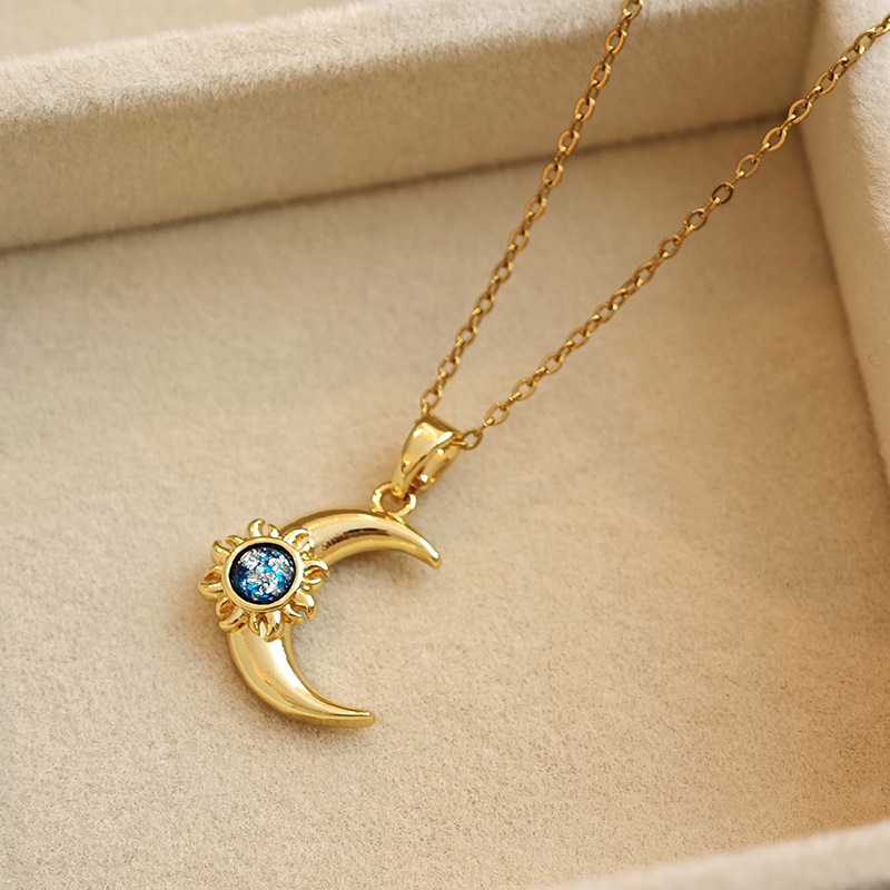 Color: Steel Moon Sun Necklace, gold Moon Sun Necklace, Steel Moon Sun blue zirconium necklace, gold Moon Sun blue zirconium necklace